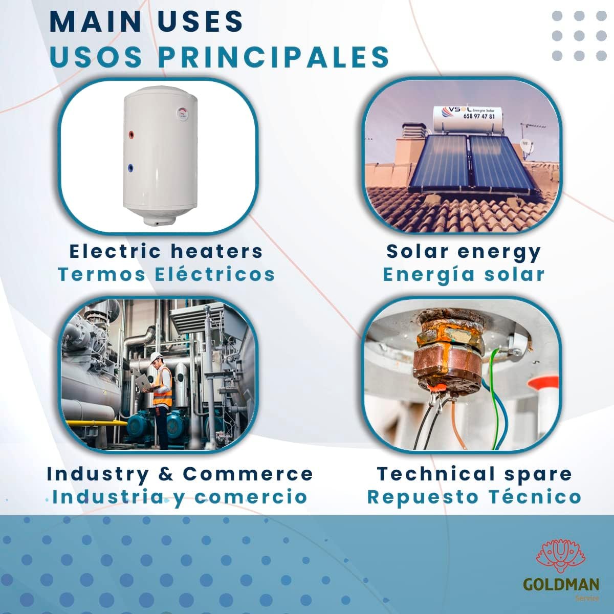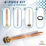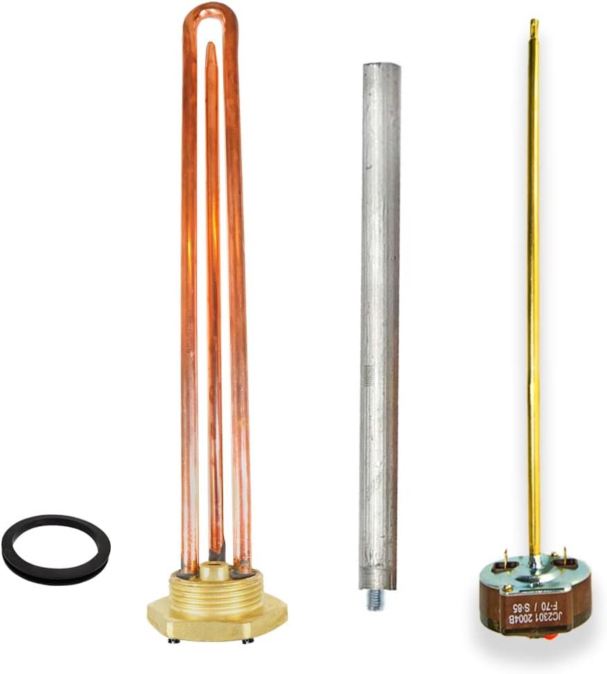 1¼ Pouce Fileté Monobloc 1500W – Kit Résistance Thermo Electrique – Thermostat – Anode Magnésium – Joint. Pièce de rechange pour chauffe-eau, accumulateur solaire, chaudière