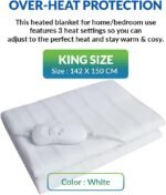 1ABOVE Couverture chauffante King Size avec 3 réglages de Chaleur, contrôleur Amovible et Protection Contre la surchauffe – Blanc (King Size -142 x 150 cm)