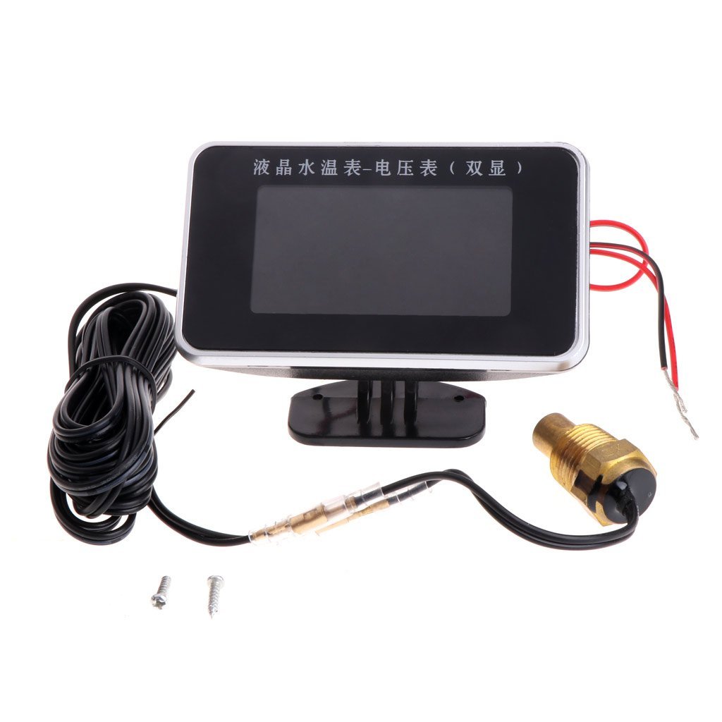 1chenpaif 2V / 24V Voiture LCD Température de L’eau Mètre Thermomètre Voltmètre Jauge 2in1 Temp & Tension Mètre 17mm Capteur