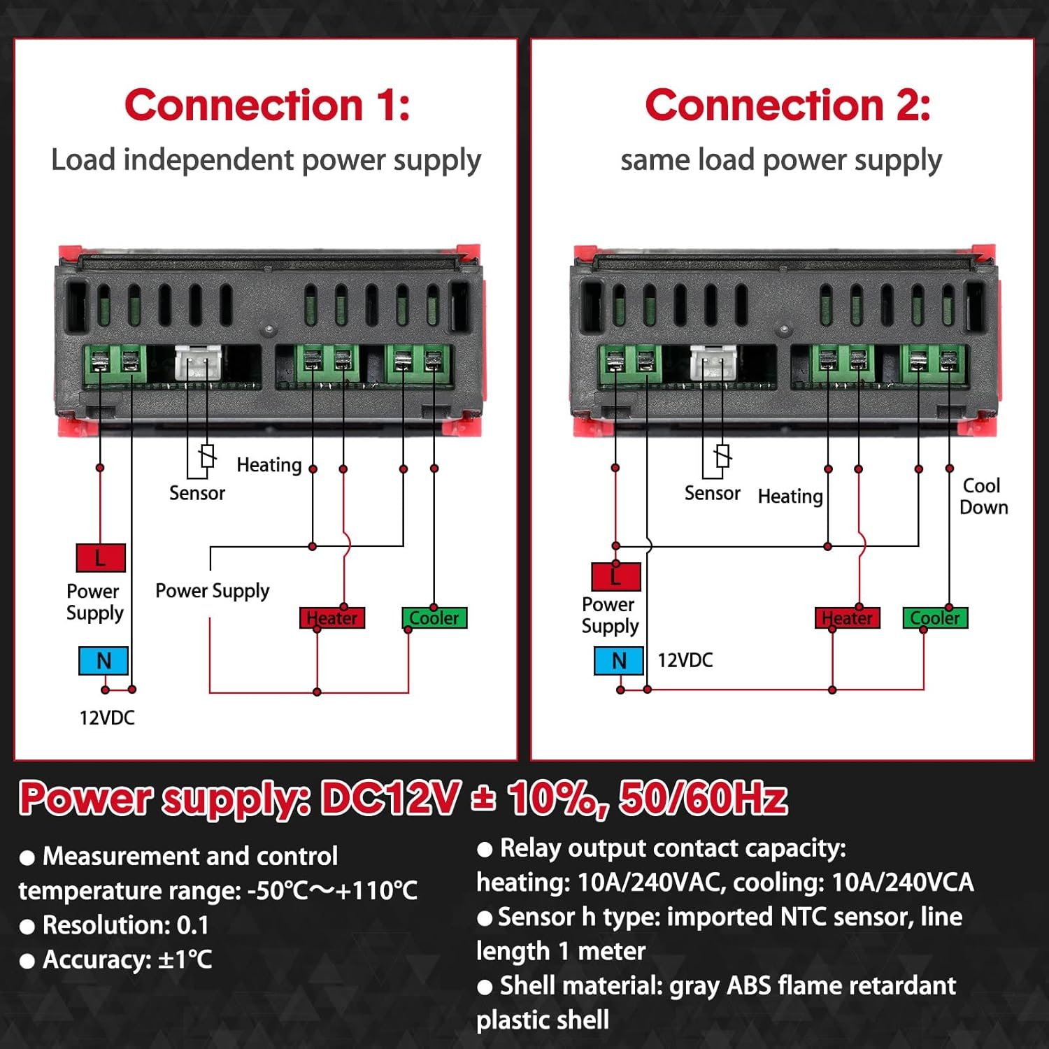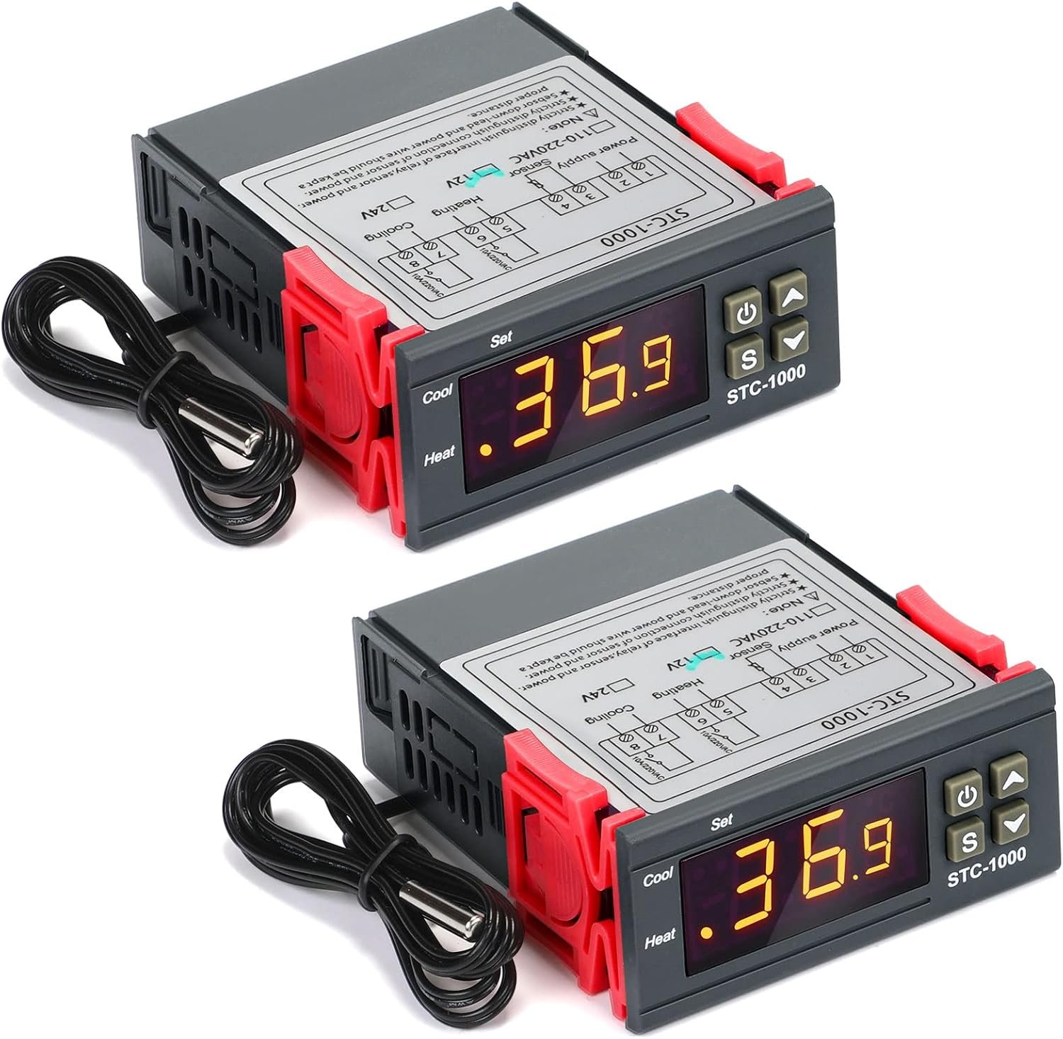 2 Pièces Régulateur de Température Numérique STC-1000 DC 12V 10A Thermostat Centigrade Contrôleur de Température Numérique Général Étalonnage de Température avec Capteur 2 Sorties Relais