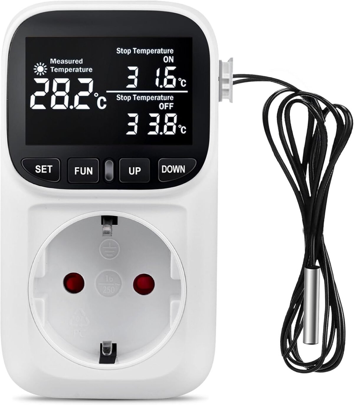 230V Prise Thermostat avec Sonde et LCD, Prise Thermostat Numérique Régulateur de Température, Thermostat Terrarium, Chauffage et Refroidissement Reptil Thermostat, pour Aquarium à Effet de Serre