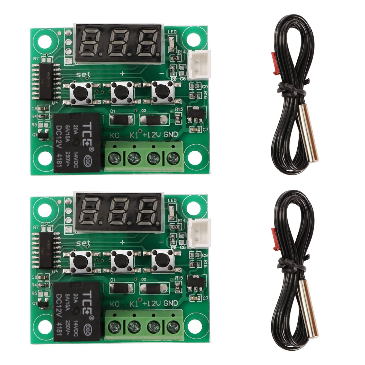 2pcs Module de Contrôleur Température XH-W1209 Thermostat à Affichage Numérique -50-110°C Thermomètre Électronique avec Relais à un Canal 10A et Sonde de Capteur Étanche