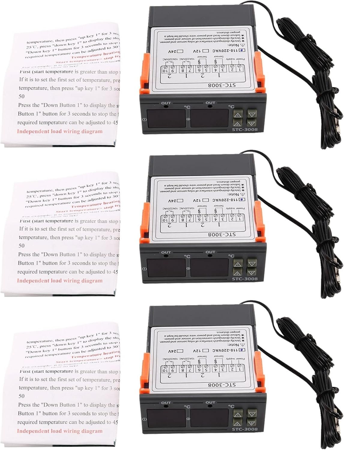 3X -3008 110-220V Double Contrôleur de TempÉRature de Thermostat NumÉRique pour HygromÈTre de DÉShumidificateur Humidistat de Thermostat D’Incubateur