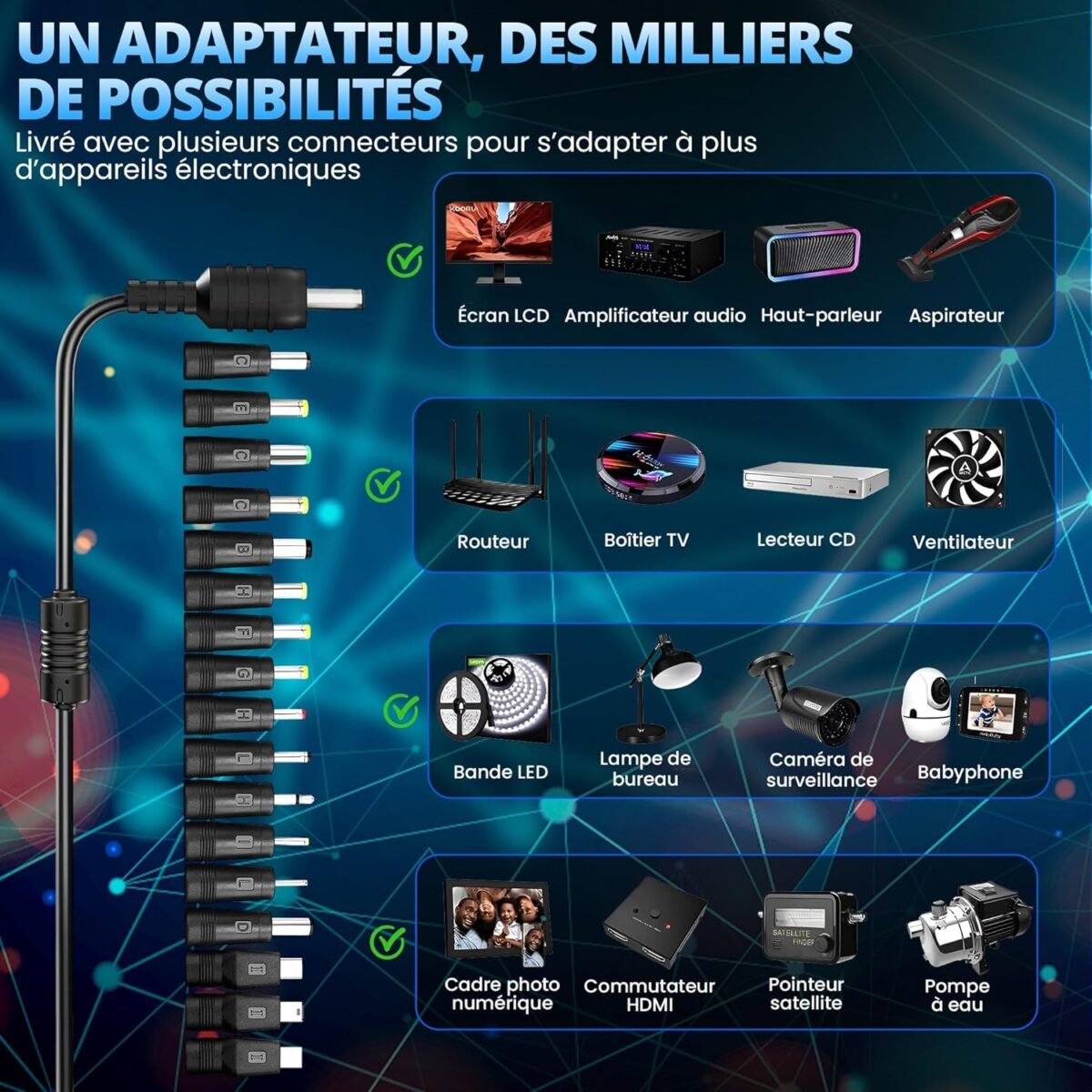Adaptateur Chargeur Secteur 17 en 1 | Alimentation 25V Remplacement Compatible avec Boussole ÉLECTRONIQUE | Station DE Survie Multifonction | Mini Chauffage DE Tente