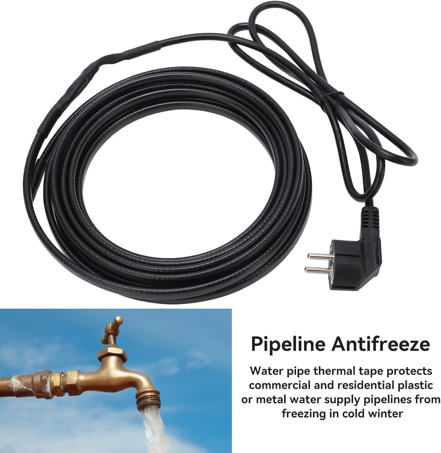 Agatige Anti-Gel Câble Chauffant, 5 m Câble Chauffant Antigel avec Thermostat, Câble Chauffant de Tuyau d’eau pour Protection Contre Le Gel des Tuyaux avec Prise d’hiver (UE 220 V)