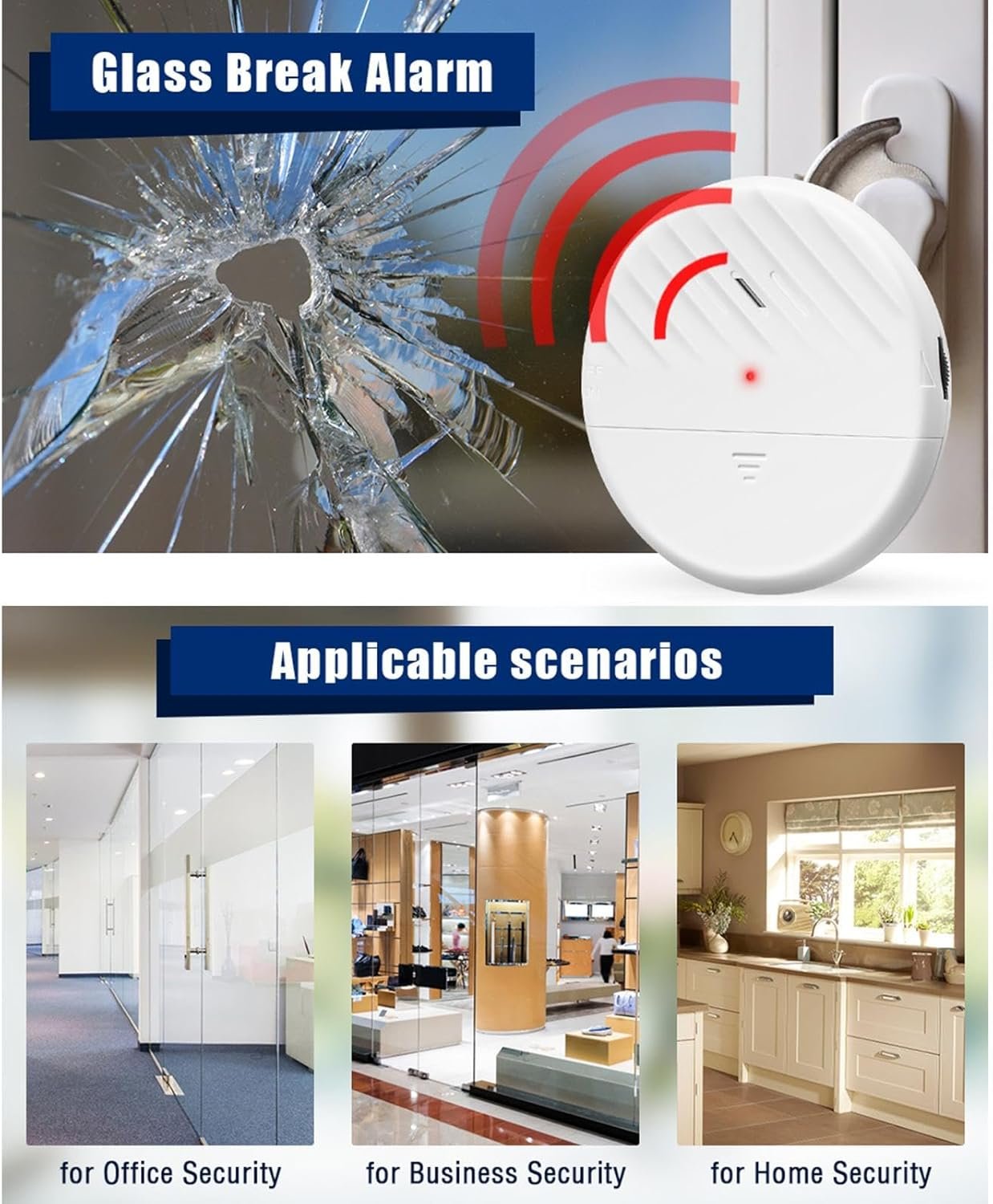 Alarme de sécurité pour fenêtre – Alarme de sécurité antivol – Alarme de sécurité pour maison intelligente – Capteur de vibrations pour la maison et les entreprises et les portes