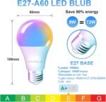 Ampoule Connectée E27 WiFi 9W 1000LM Ampoule LED Intelligente RGB+CCT 2700K-6500K, Compatible avec Alexa Google Home, Smart Life APP, Commande Vocale, 2PCs
