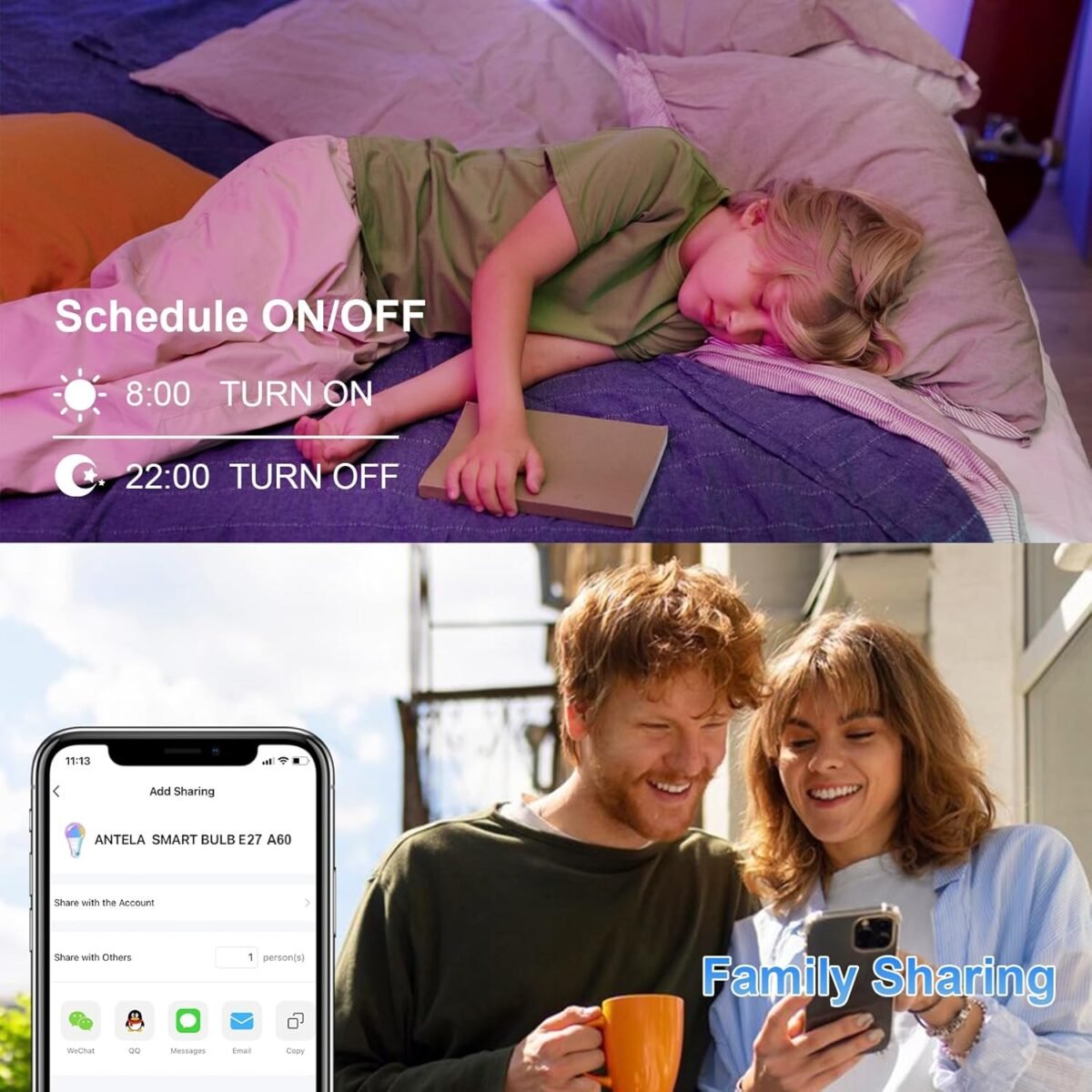 Ampoule Connectée E27 WiFi 9W 1000LM Ampoule LED Intelligente RGB+CCT 2700K-6500K, Compatible avec Alexa Google Home, Smart Life APP, Commande Vocale, 2PCs