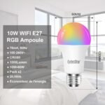 Ampoule Intelligente WiFi, Ampoule A60 E27 Couleur RGB Compatibles avec Alexa, Google Home et SmartLife, 10W (Équivalent 80W) 3000K-6500K et Lumière blanche dimmable, Lot de 2