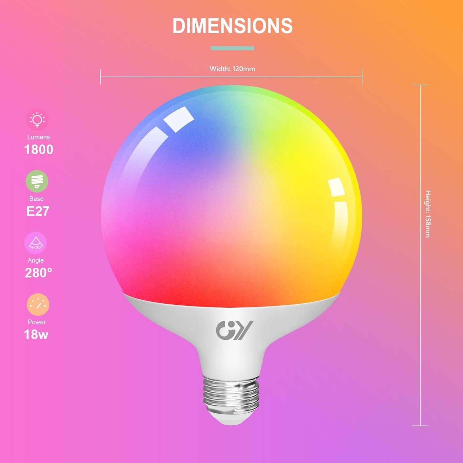 Ampoules Connectée E27 LED WiFi 18W Globe G120 1800LM, Intelligente Dimmable Multicouleurs RGB&CCT 2700K-6500K, ampoule Smart life Compatible avec Alexa/Google Home