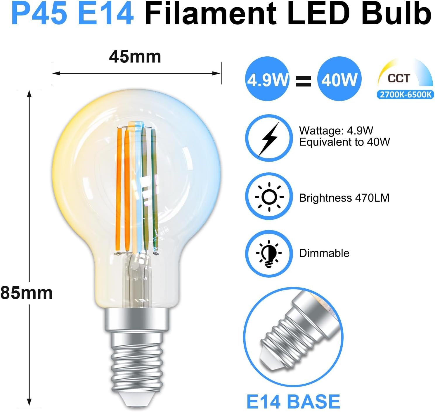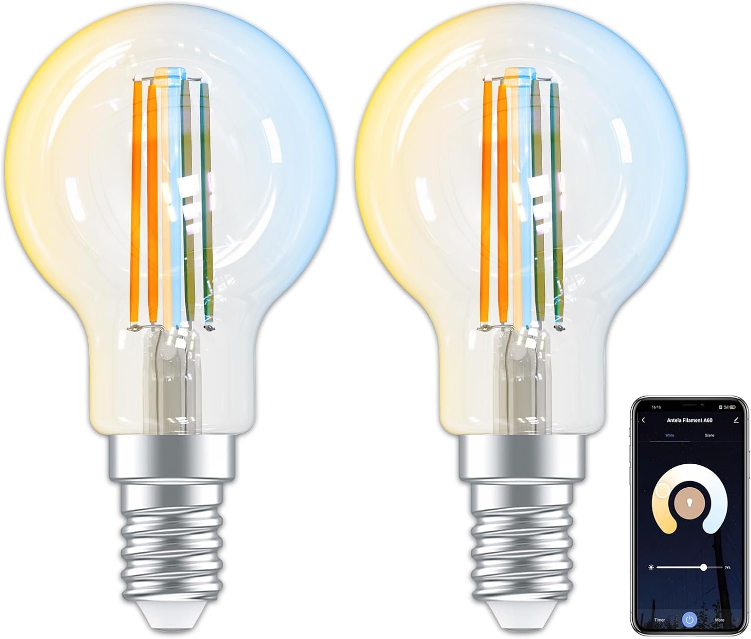 ANTELA Ampoule Connectée E14 P45 4,5W 470LM, Ampoule LED Intelligente 2700K-6500K Compatible avec Alexa, Google Home, Smart Life APP, 2PCs