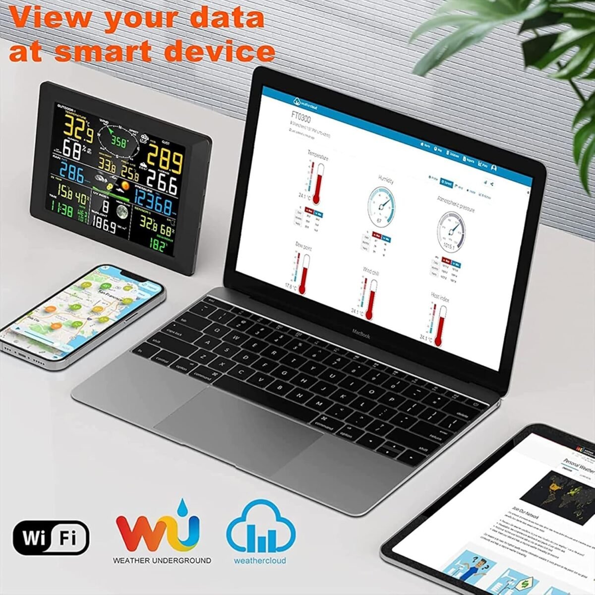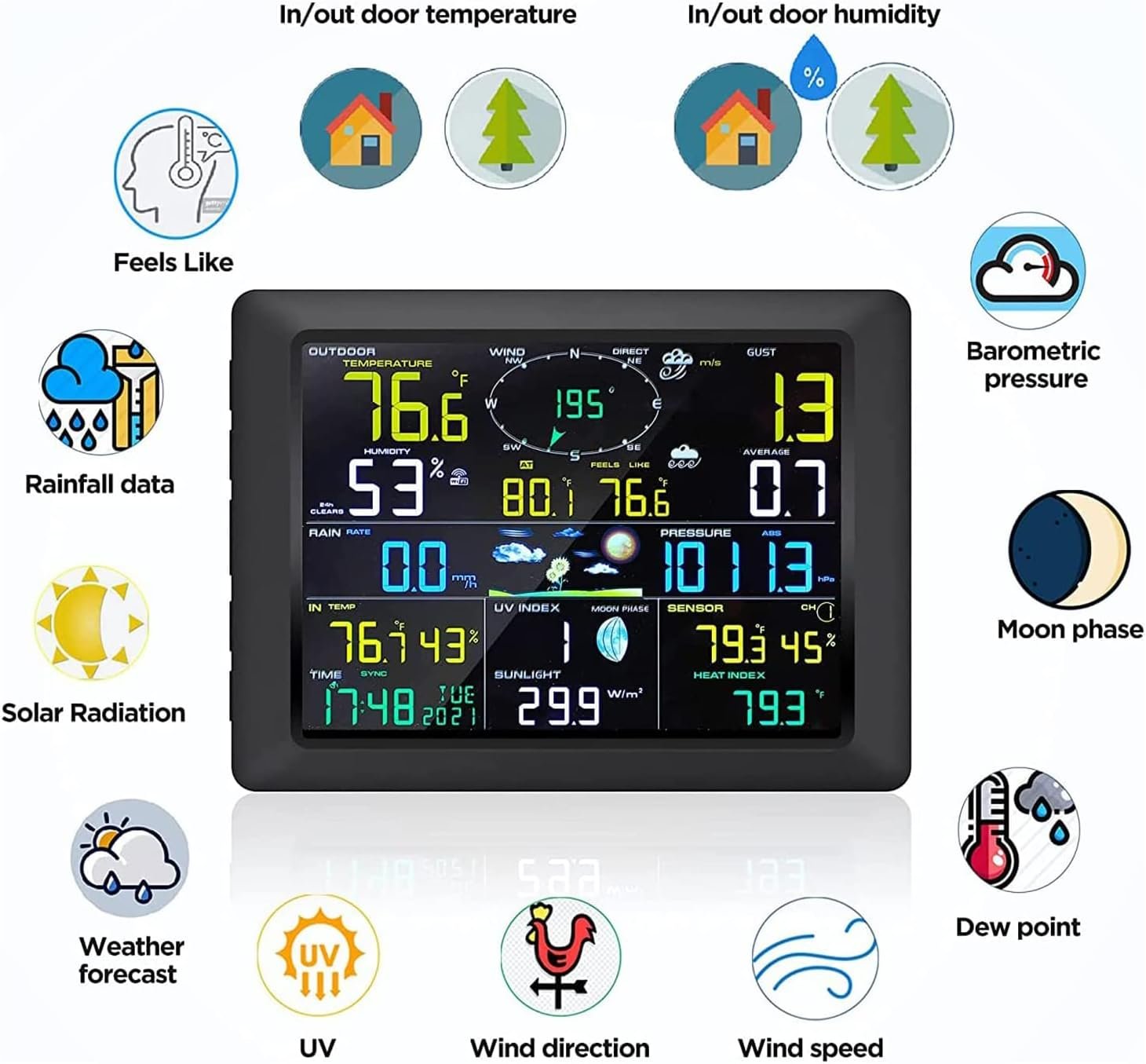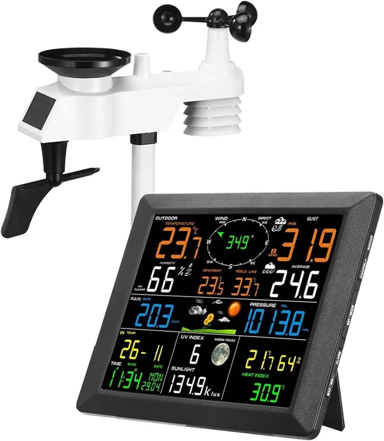ANZAGA Station météo intérieure et extérieure avec capteur et écran LCD, pluviomètre et Vitesse/Direction du Vent, Phase de Lune, prévisions, température, Pression, humidité