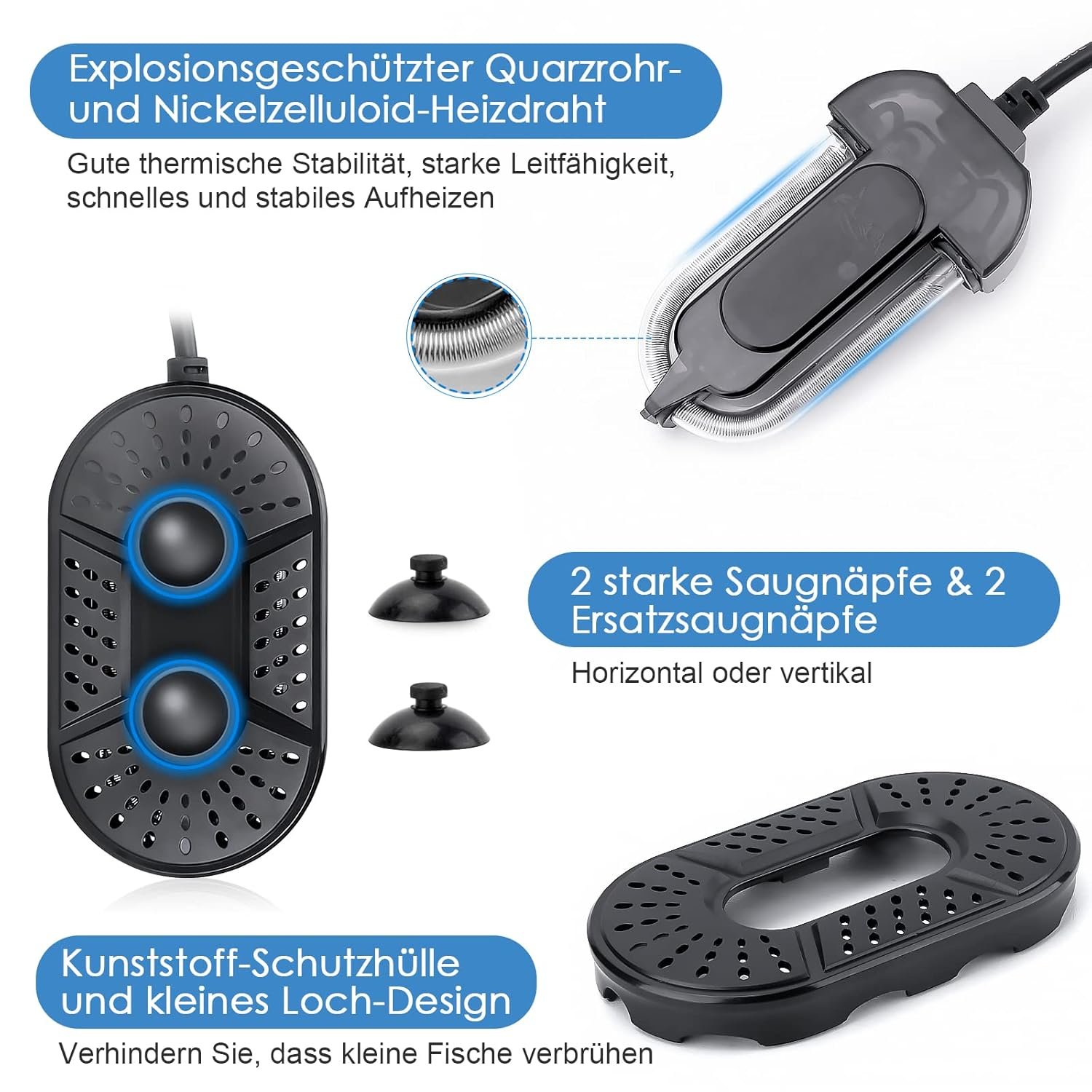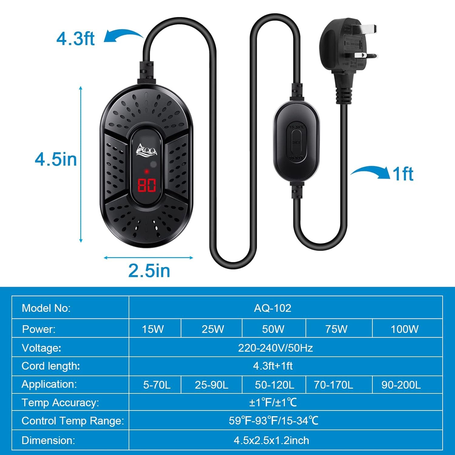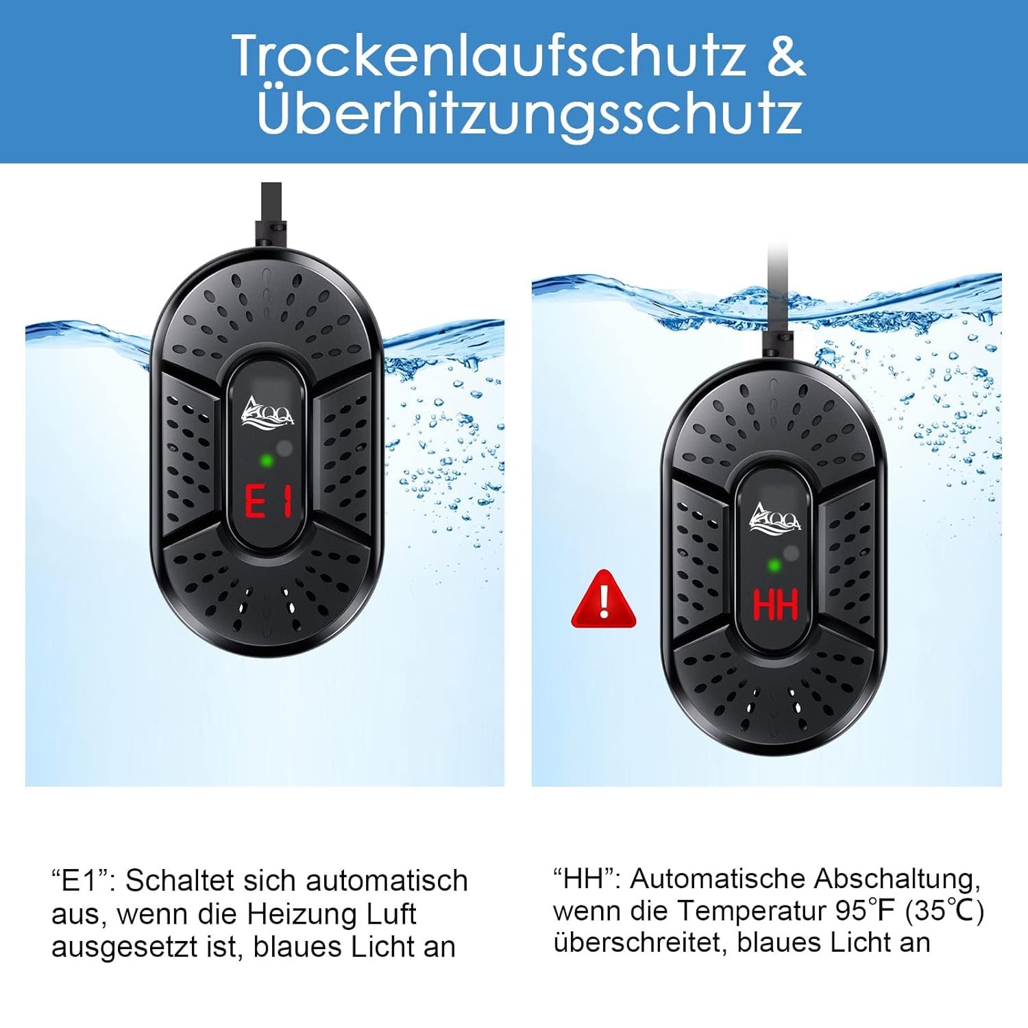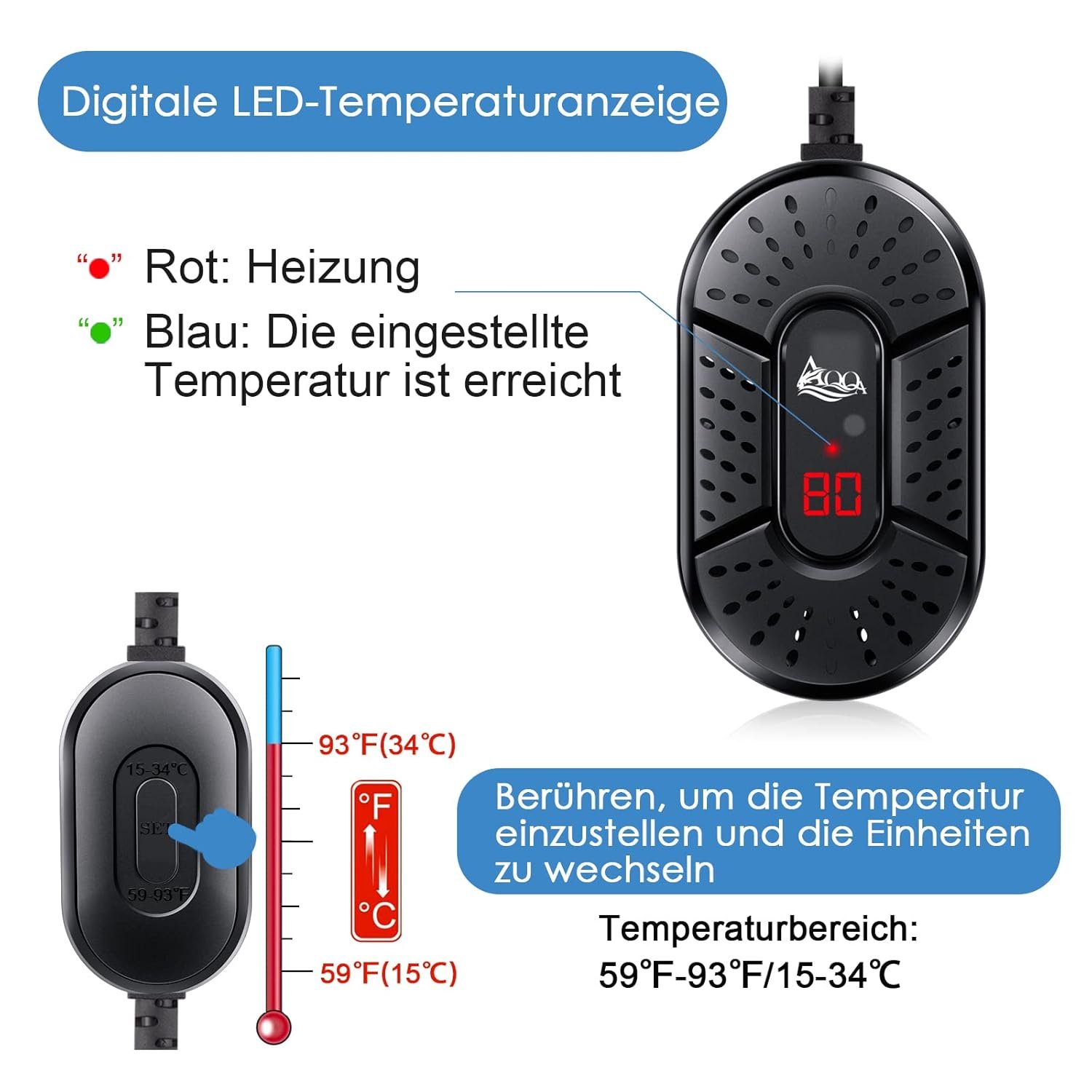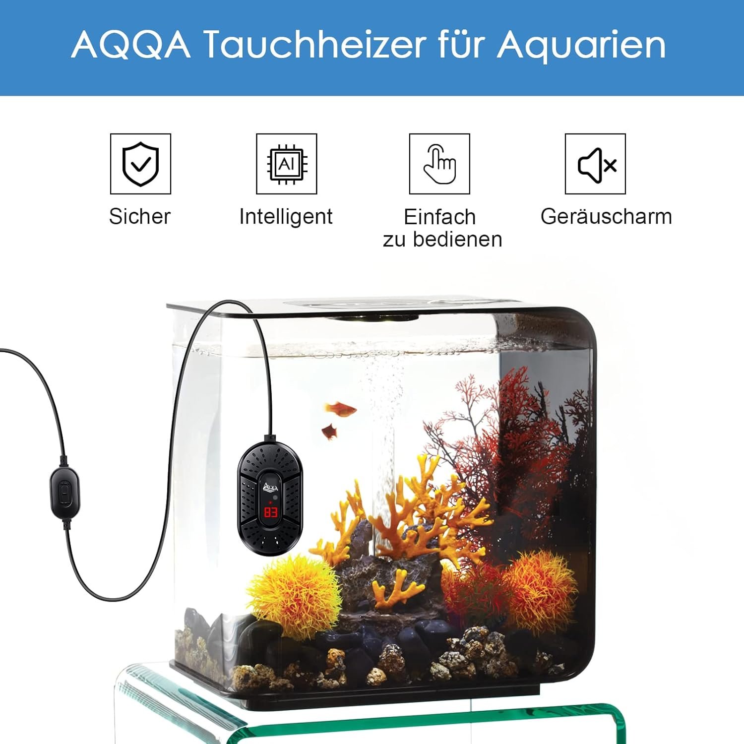 AQQA Chauffage d’aquarium avec Affichage LED, régulateur de température réglable (50W)