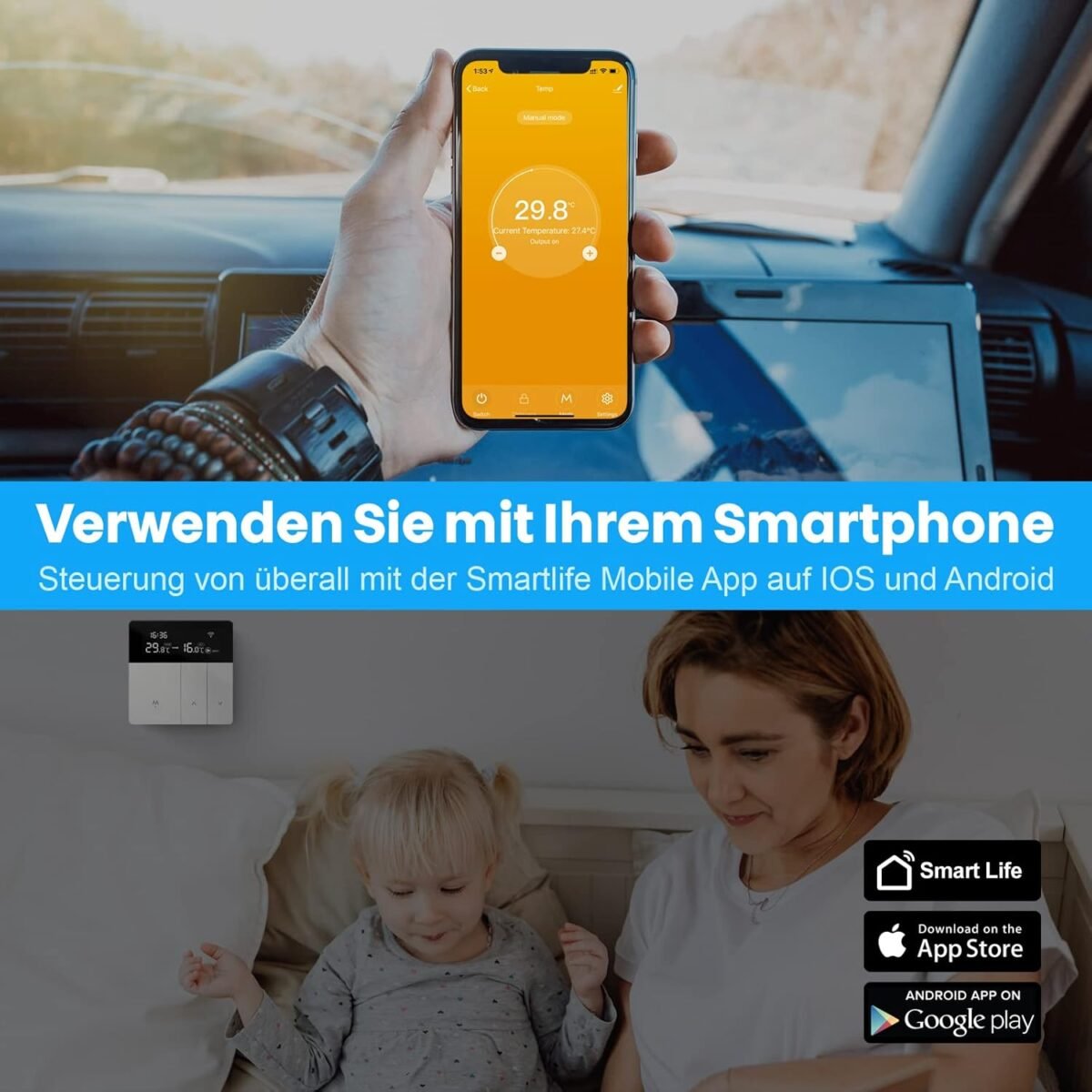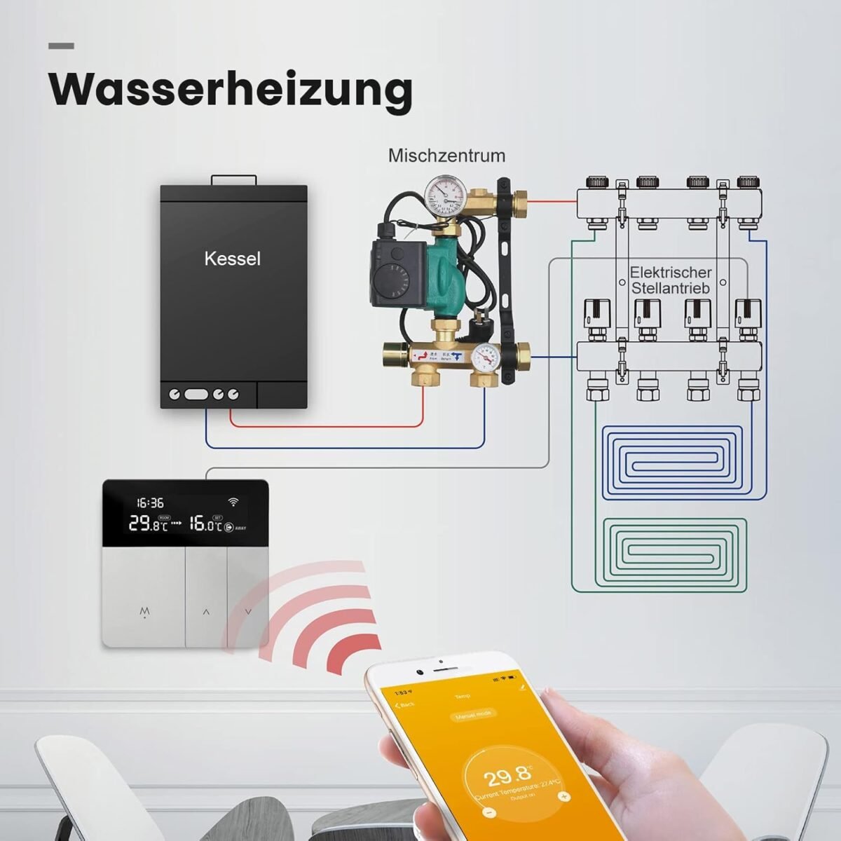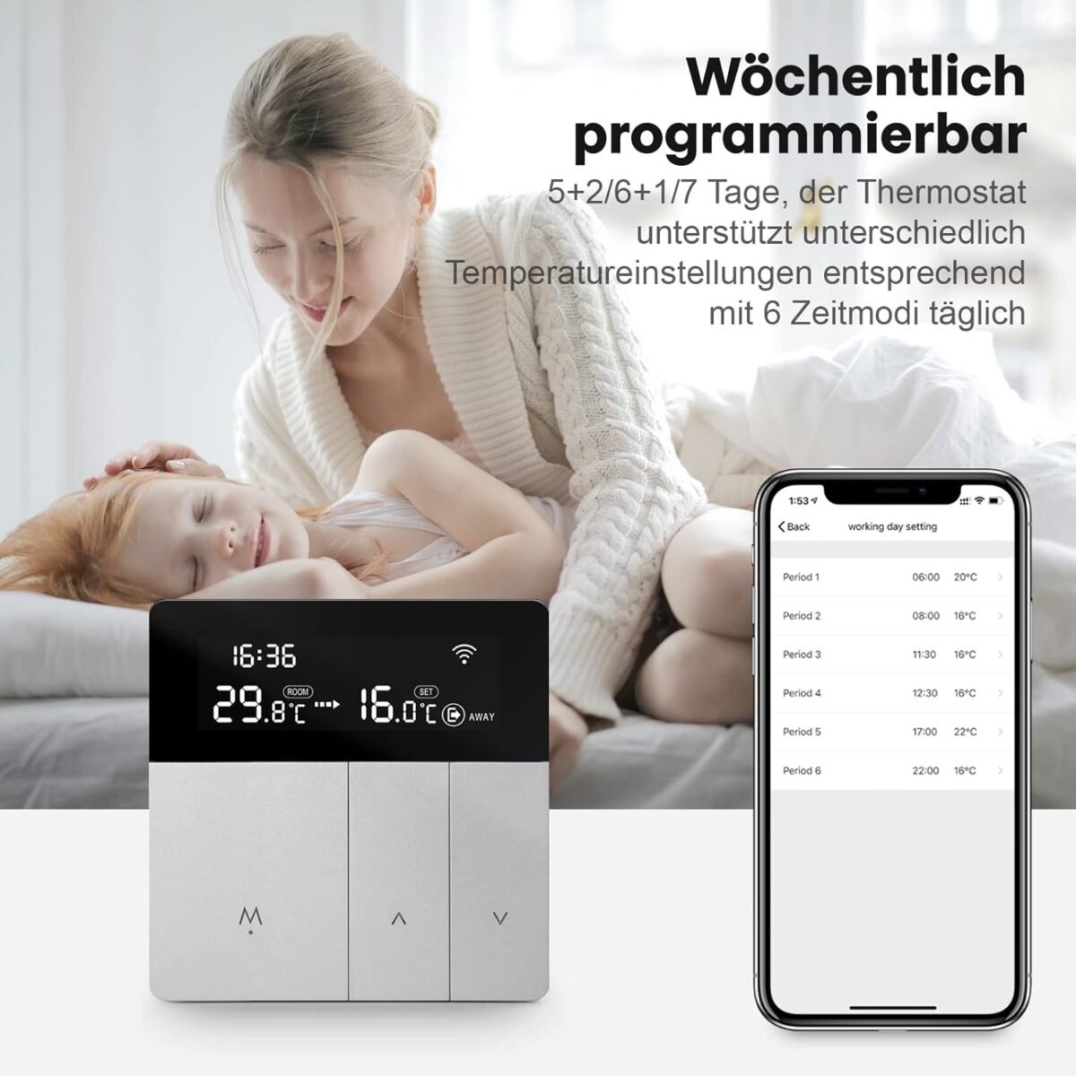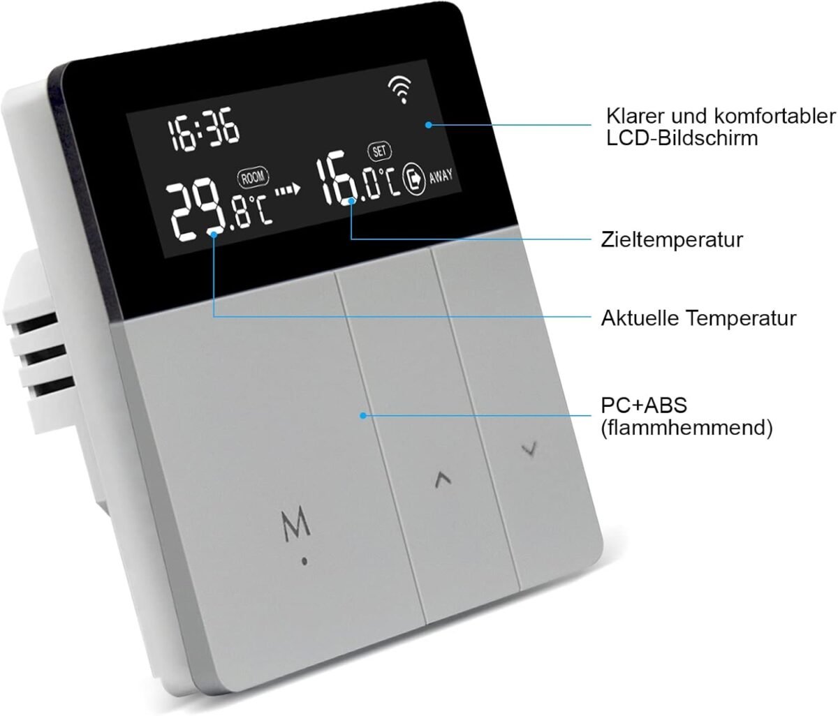 AVATTO Thermostat Intelligent WiFi pour Chauffage par Le Sol électrique, Thermostat de Chauffage numérique Intelligent pour écran Tactile, programmable, Google Home, Smart Life/Tuya App