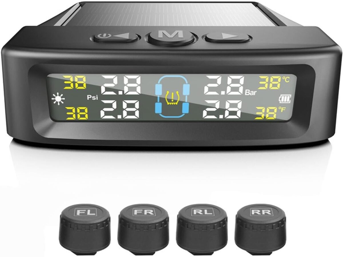 BABIBAOBEI Systèmes de pression des pneus avec 4 capteurs TPMS USB énergie solaire affiche la pression et la température de voiture Tpms Moniteur de pneu