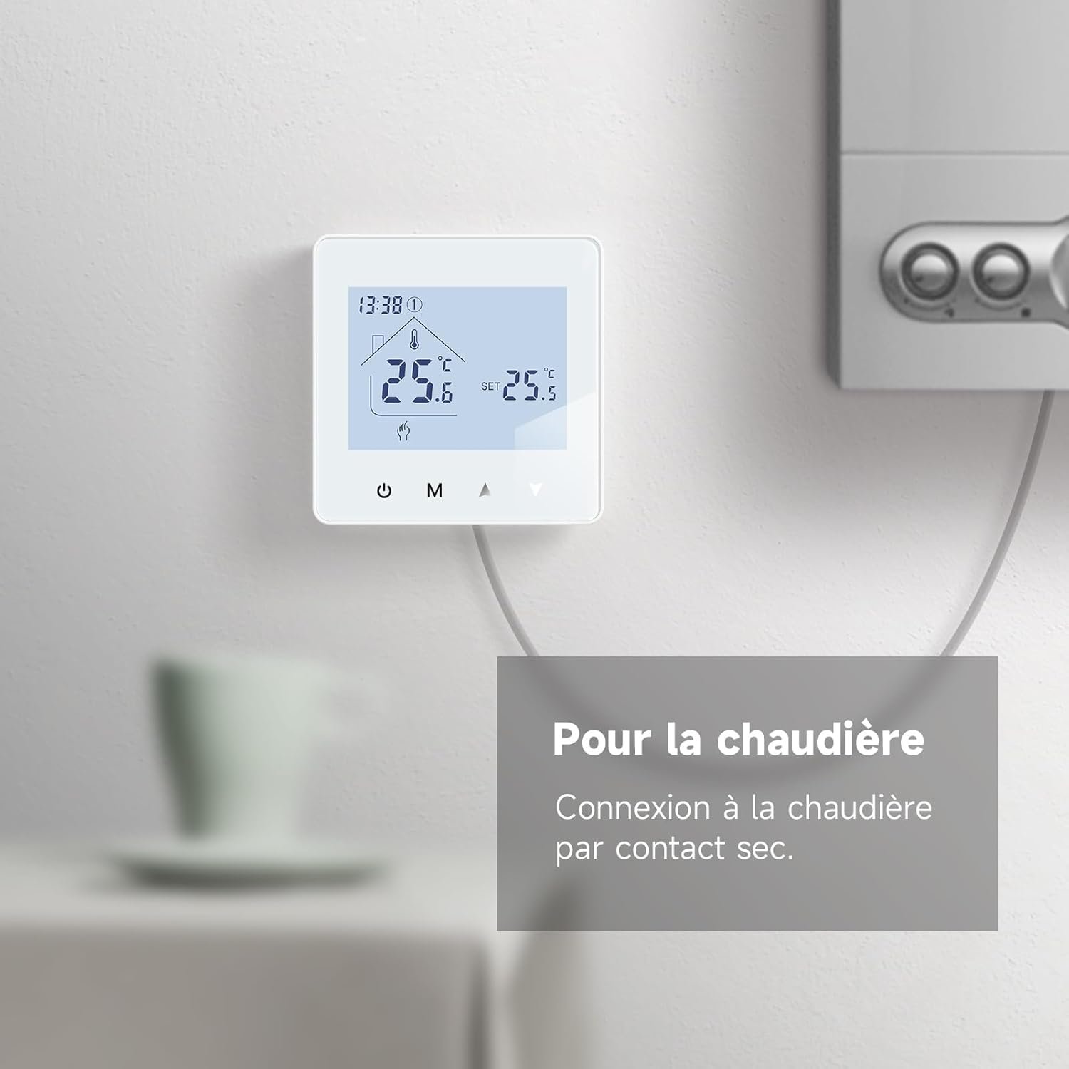 Beok Thermostat Chaudiere Gaz Thermostat Chauffage Numérique,Programmable et Contrôle de Chaudière à Eau, Fonctionnement sur Piles 3 AA, BOT – R6W Blanc