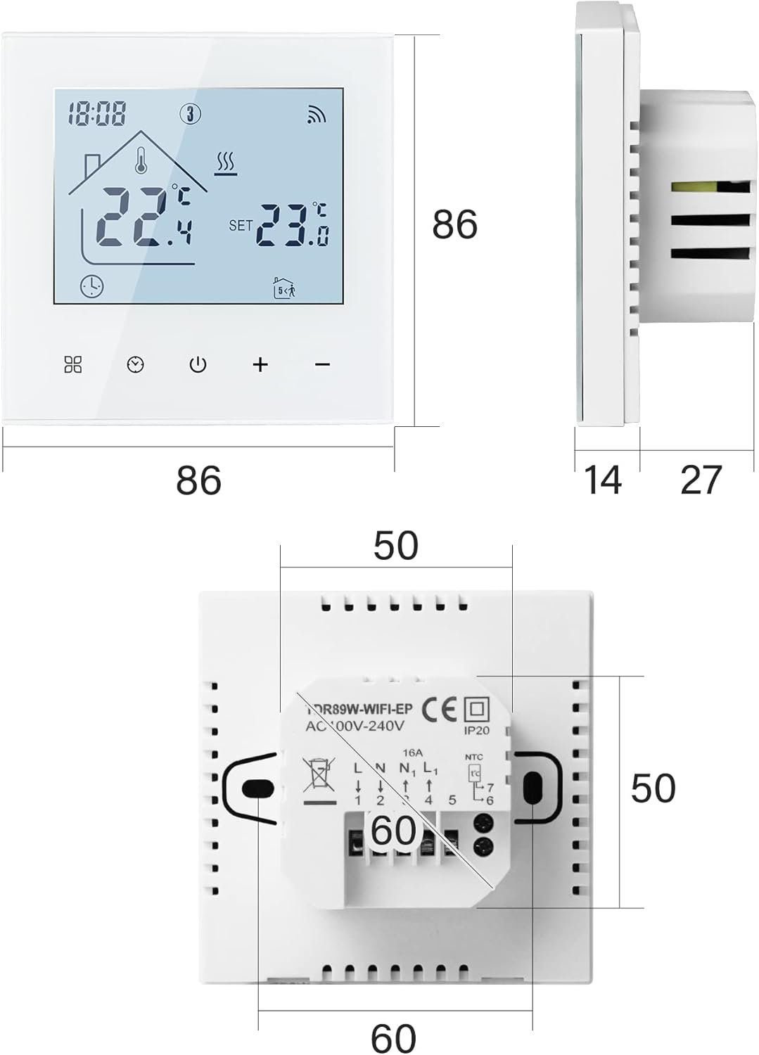 Beok Thermostat Connecté WiFi Maison Connectée Thermostat pour Plancher Chauffant à Eau Thermostats d’ambiance Programmables sans Fil Compatible Alexa, Google Home 3A,Blanc