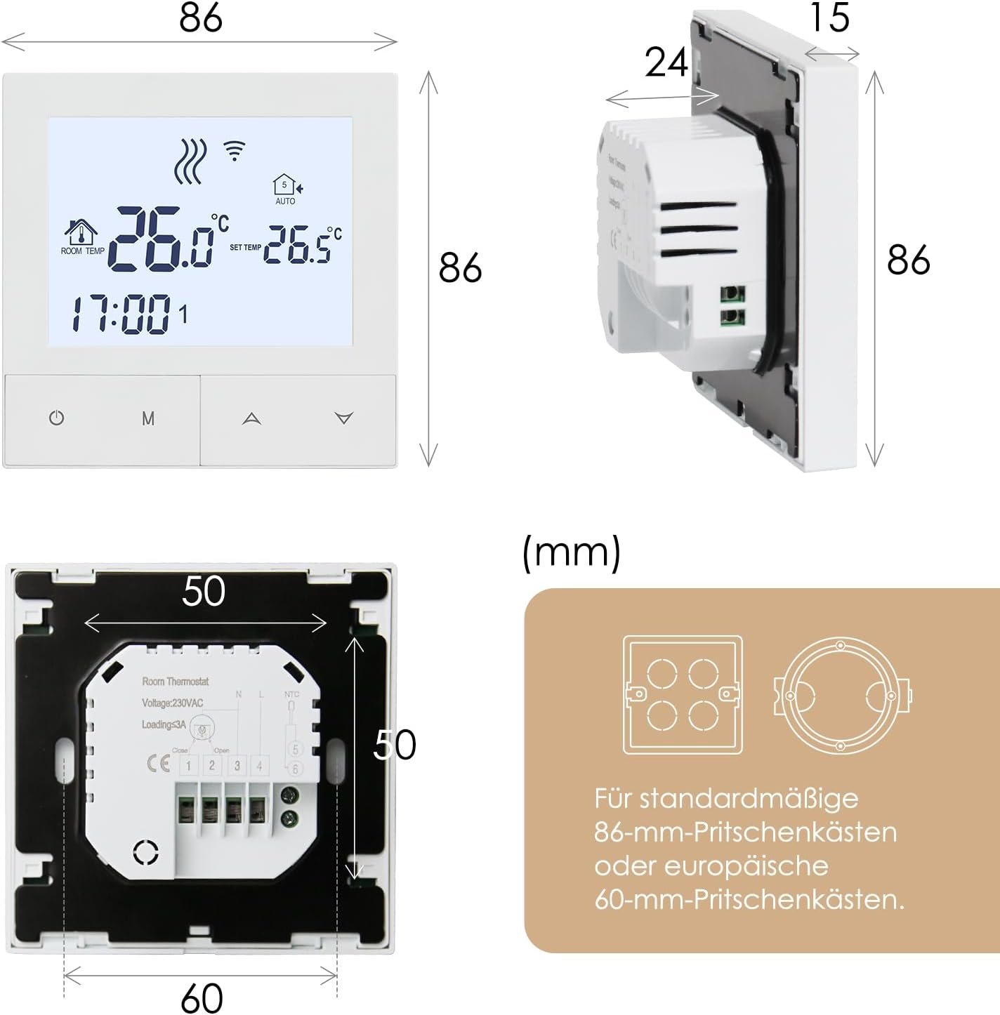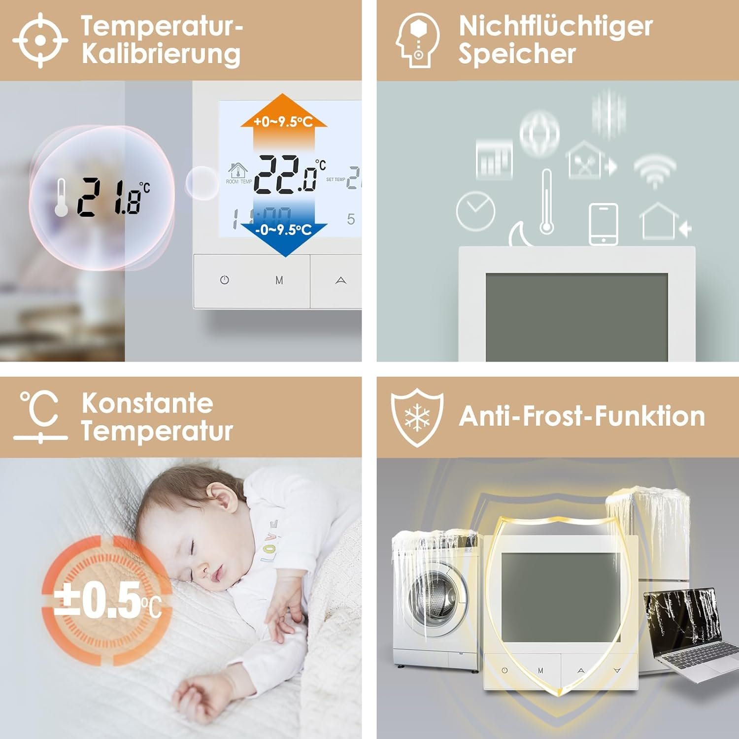 Beok Tuya Thermostats Thermostat Programmable Thermostat de Chauffage écran LCD pour Facilité de Contrôle et Programmation, TDS72WIFI-WP