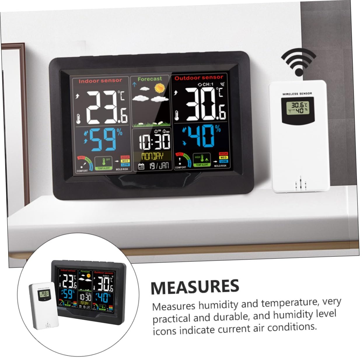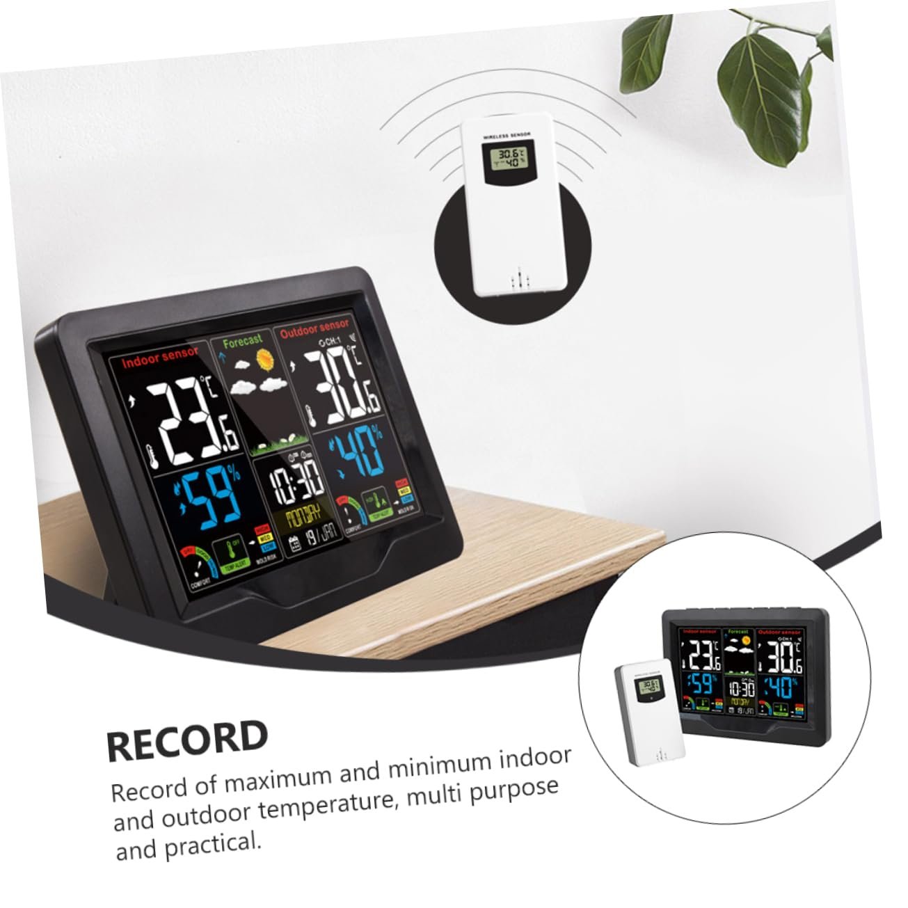 BESPORTBLE Horloge Météo Numérique à Écran Couleur Avec Capteur Thermomètre Et Hygromètre Intérieur USB Rechargeable Design Élégant Pour Température