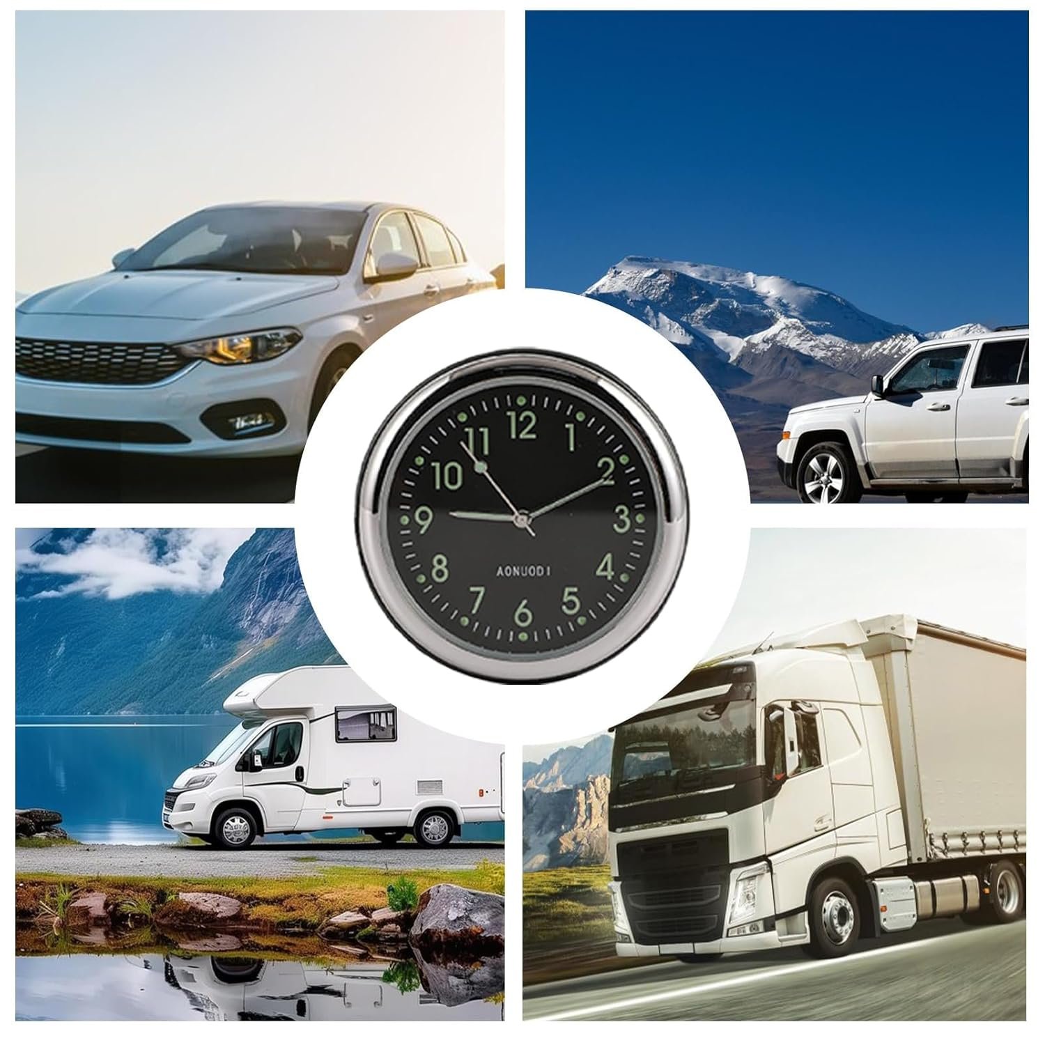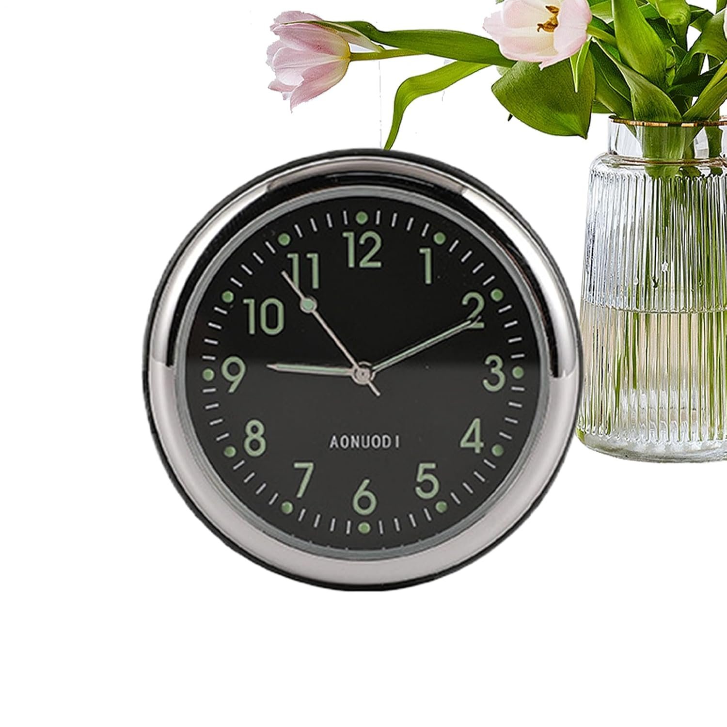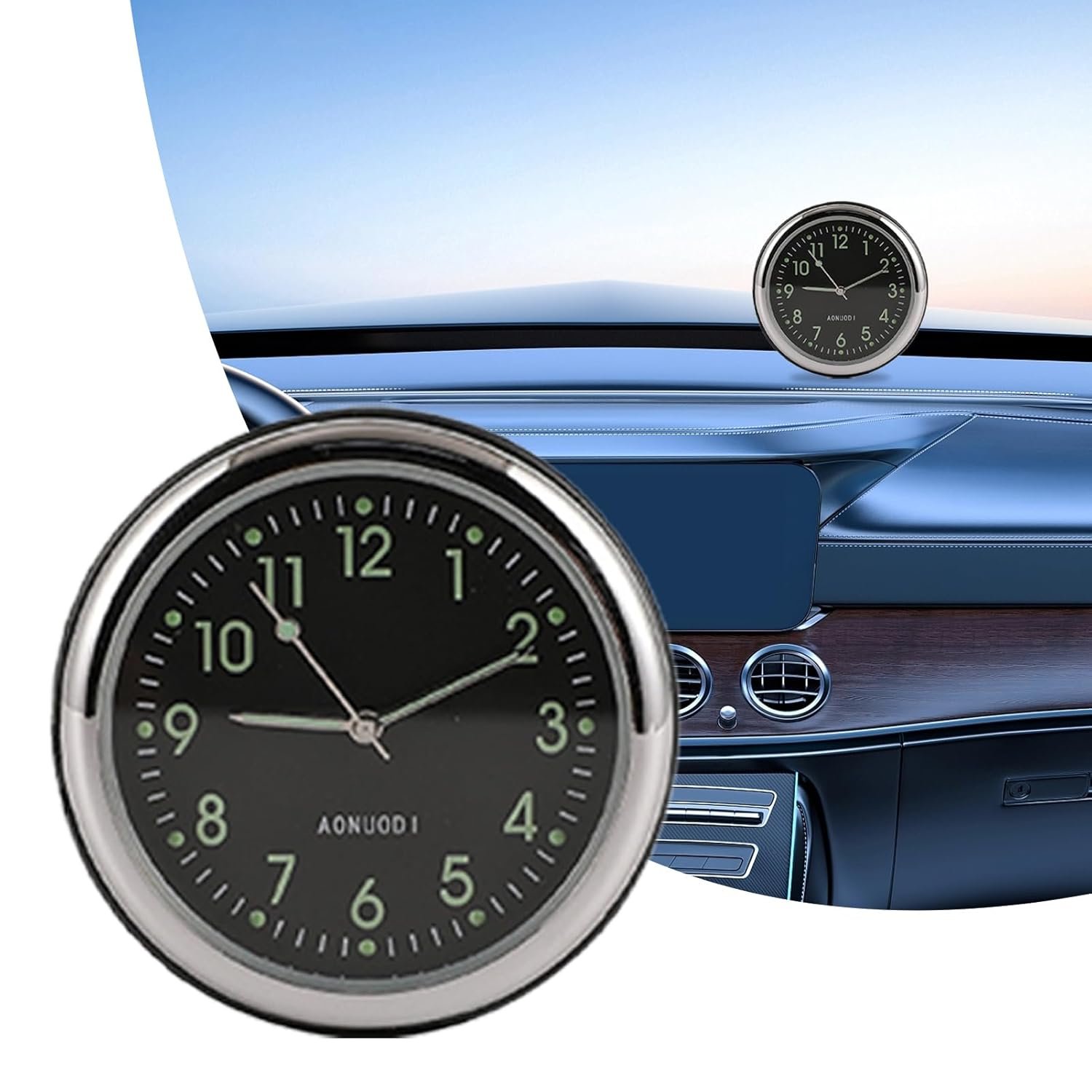 Bexdug Horloge pour Tableau de Bord de Voiture – Capteur de Température pour Véhicule – Montre Adhésive Miniature pour Prise d’Air Fonction Luminieuse Maison Véhicules Camions Camping-Bateaux