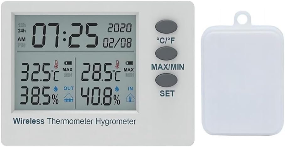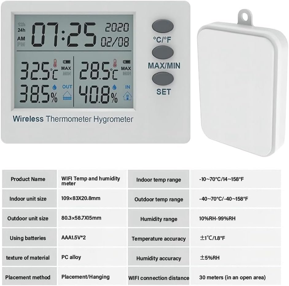Bntaomle Thermomètre sans WiFi Hygromètre Intérieur Extérieur Numérique Température Humidité Mètre Grand Écran Heure Électronique