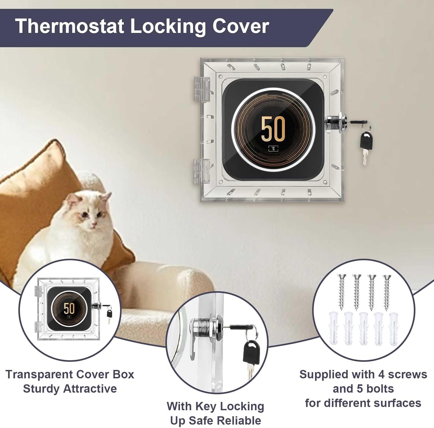 Boite de Verrouillage Thermostat avec Clé, Universal Thermostat Guard, Protection de Thermostat en Acrylique Transparent, Compatible Thermostats de 12X14X4.5cm Ou Plus Petit (Petit)