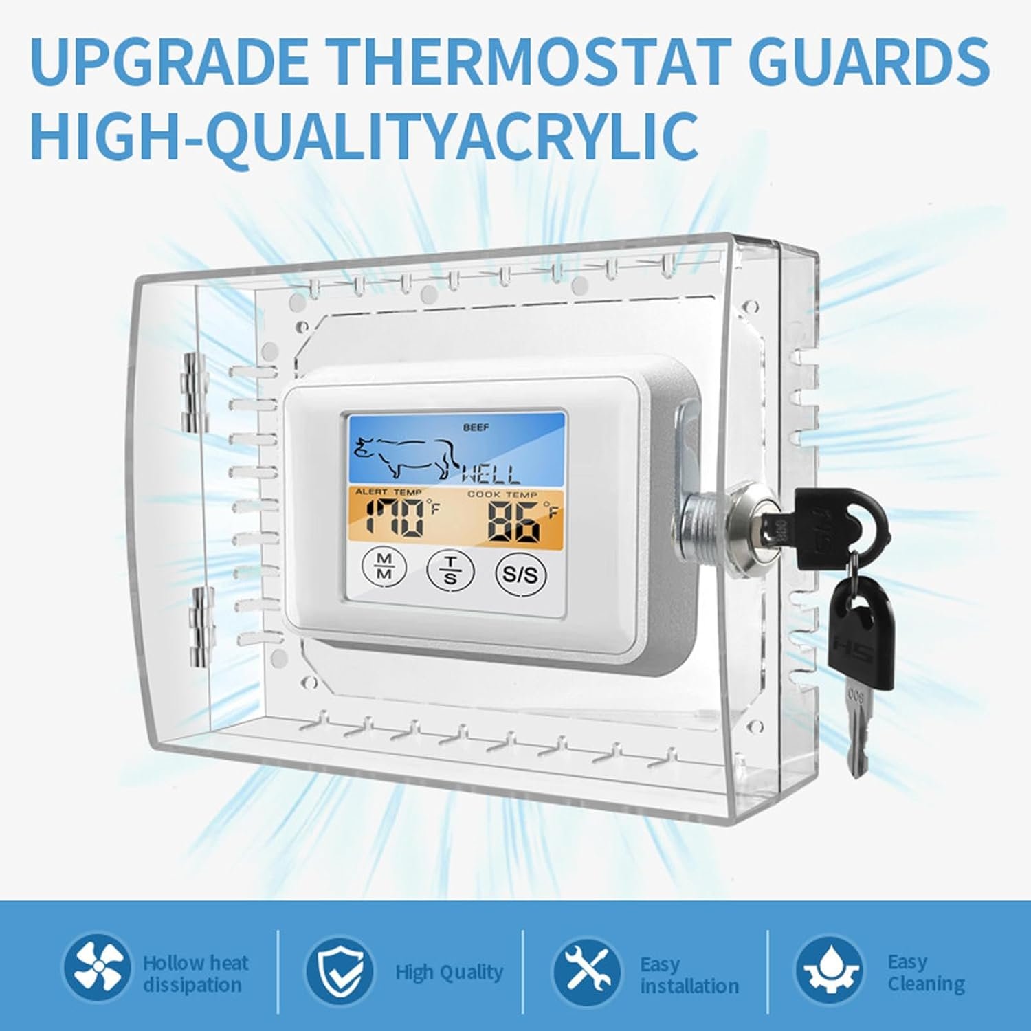 Boîtier de sécurité pour thermostat avec motifs transparents avec clé et vis Accessoires pour protéger les thermostats muraux