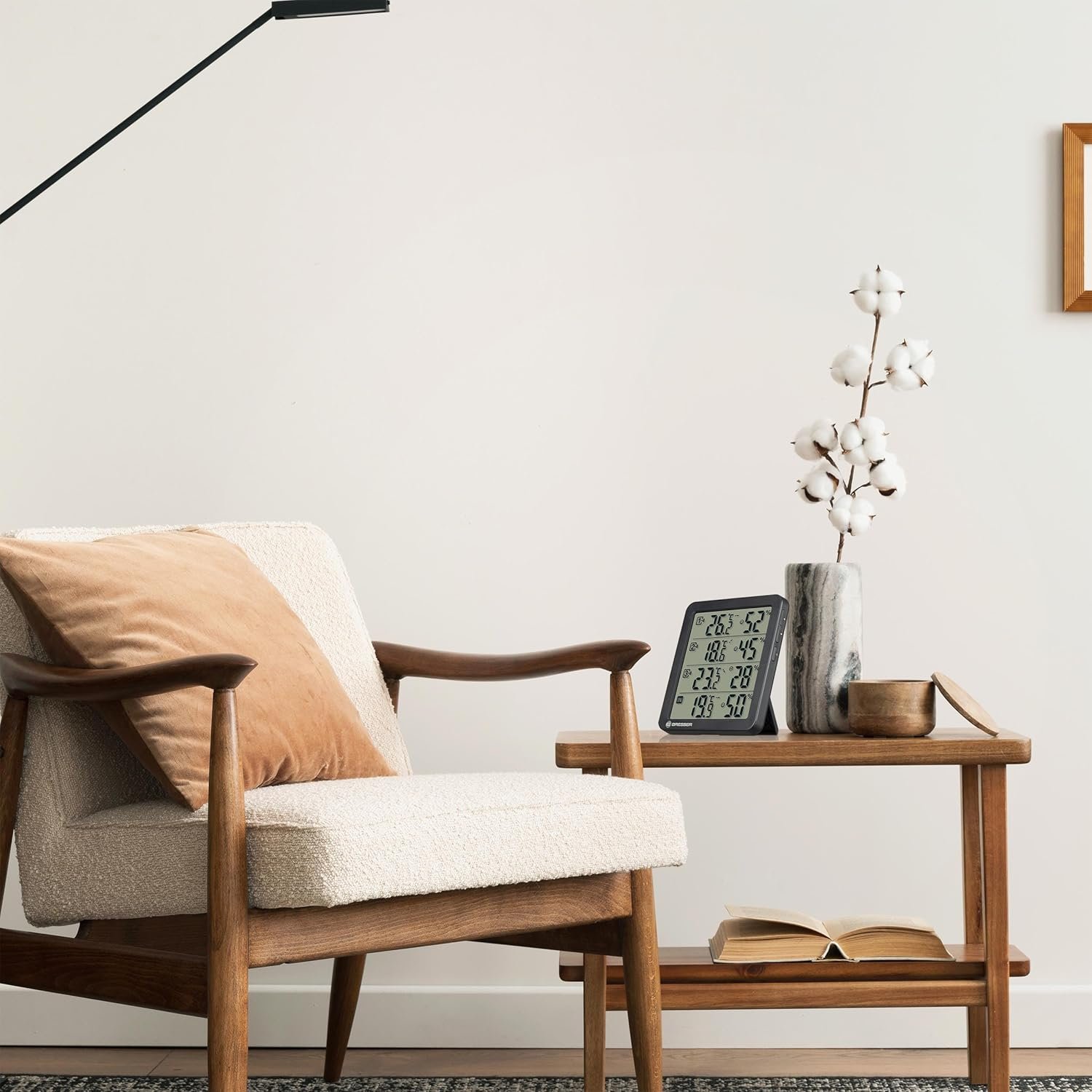 Be the first to review “Bresser Thermo-hygromètre Quadro NV avec 4 points de mesure, capteur intégré et 3 capteurs sans fil, indicateur de confort Smiley, mémoire Min/Max, IP44, noir”