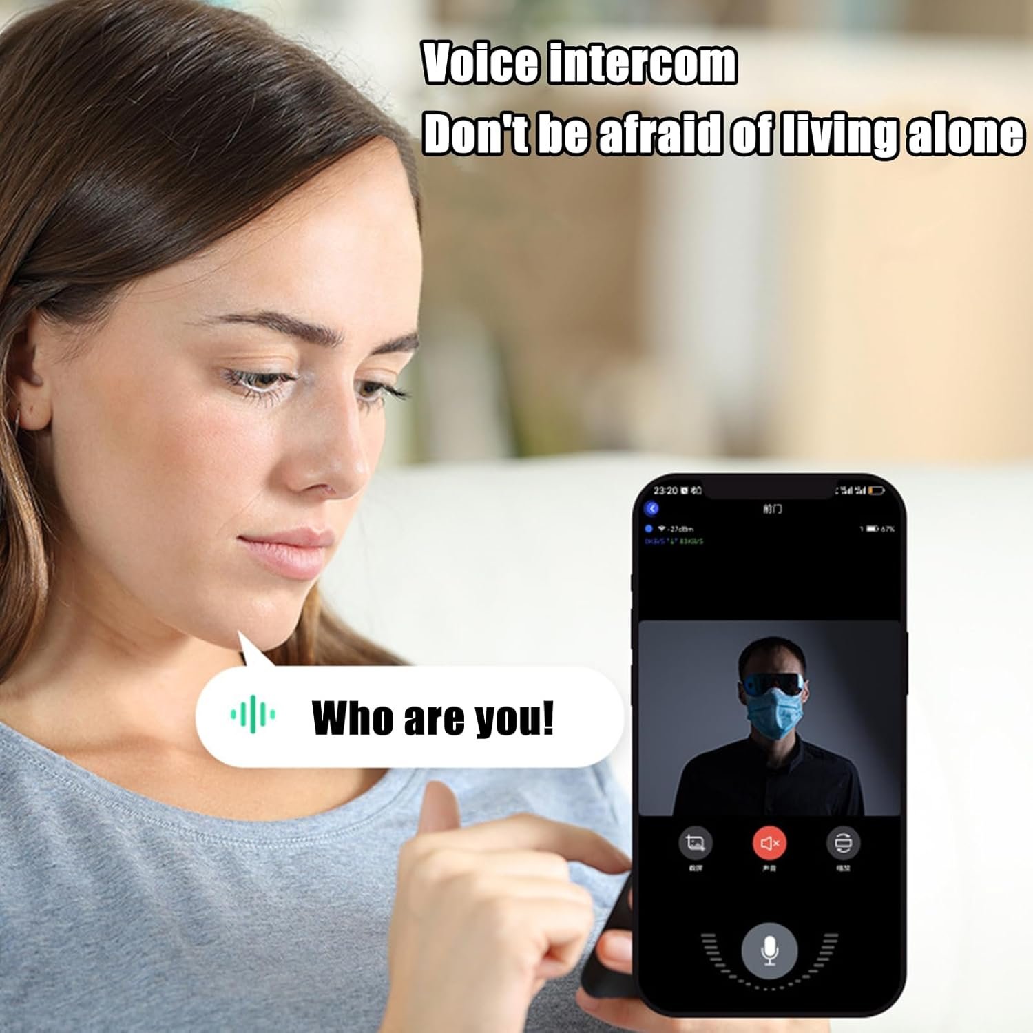 Caméra de sonnette sans fil, moniteur de maison intelligente, clarté de vision , design de montage adhésif, idéal pour les locataires d’appartement, les ménages familiaux, la sécurité des