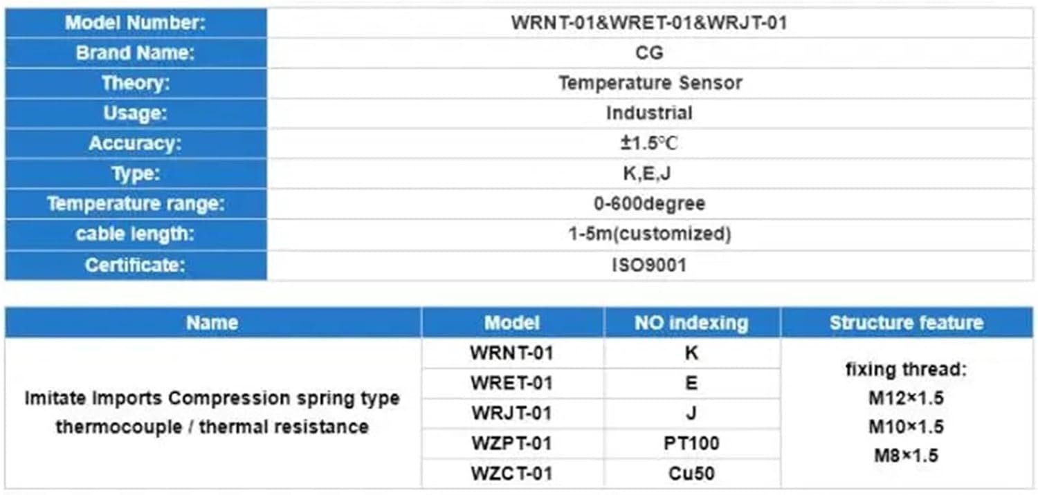Be the first to review “Capteur de thermocouple à baïonnette WRNT-01 M12 à Ressort de Compression de Type K, Fil blindé, for contrôleur de température(5M)” Cancel reply