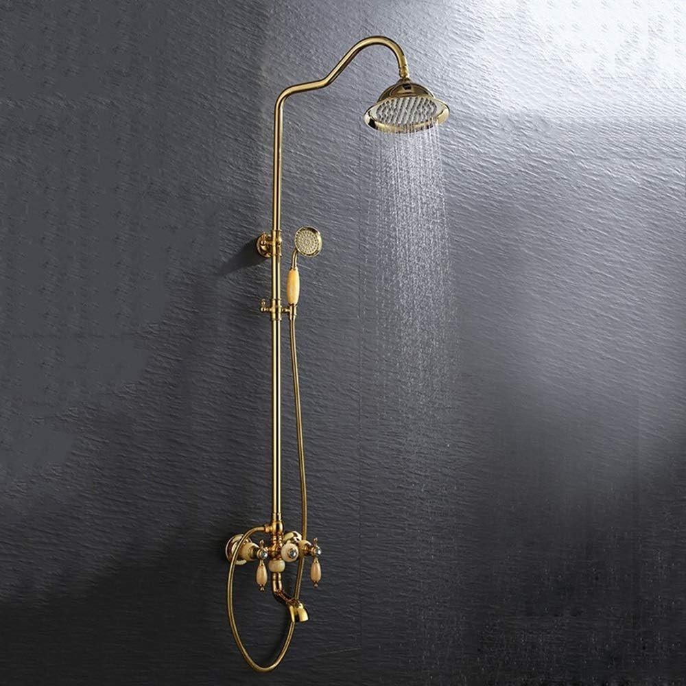 CAZARU Ensemble de Douche en Jade doré européen Robinet de Douche en cuivre Thermostatique Top Spray Lifting Système de Douche Chaude et Froide Domestique 3 Types de cabines Belle Pratique