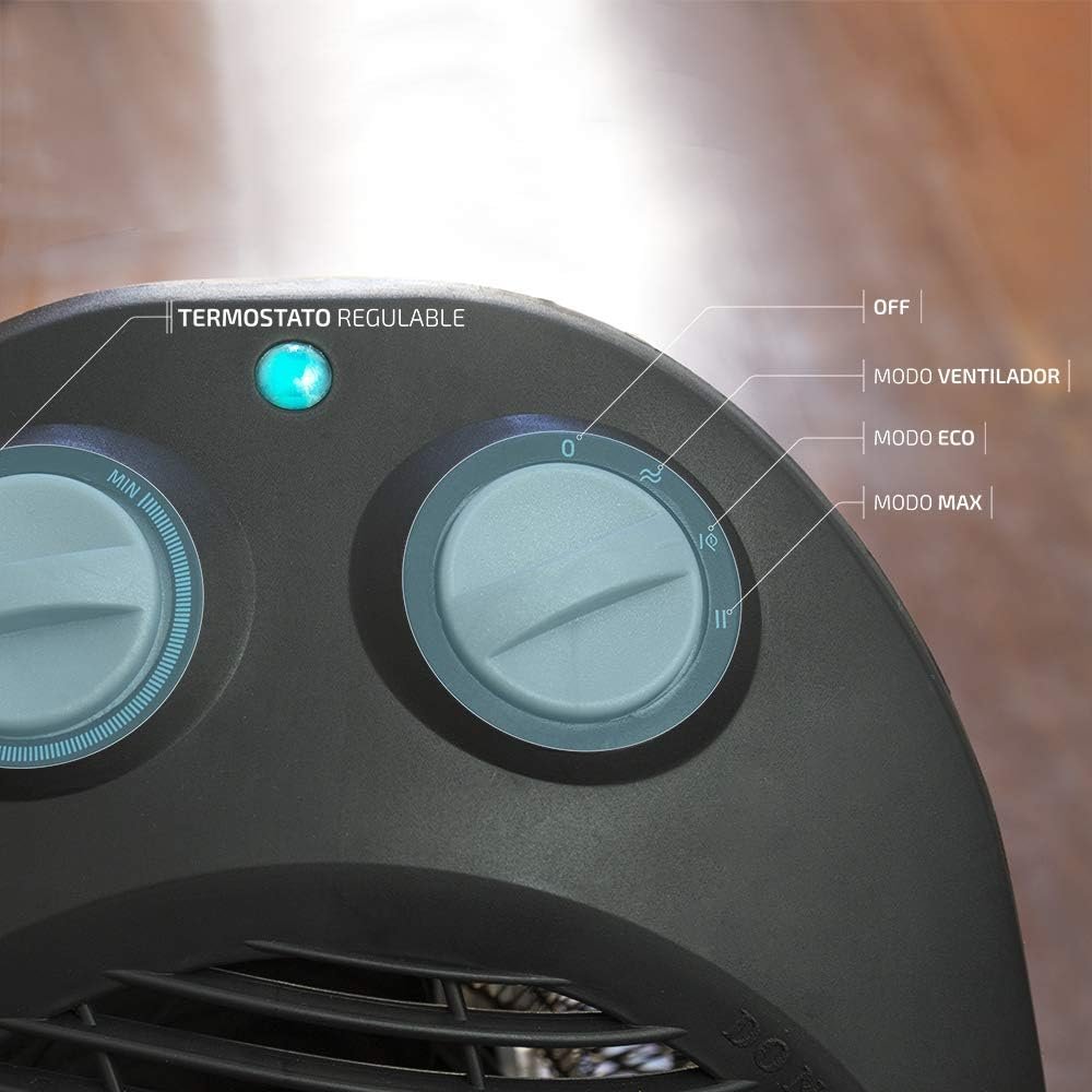 Cecotec Chauffage Faible Consommation Ready Warm 9750 Rotate Force. 3 modes, Thermostat Réglable, Protection contre les surchauffes, Système Anti-renversement, 2000 W. (Rotate Force, Nègre)