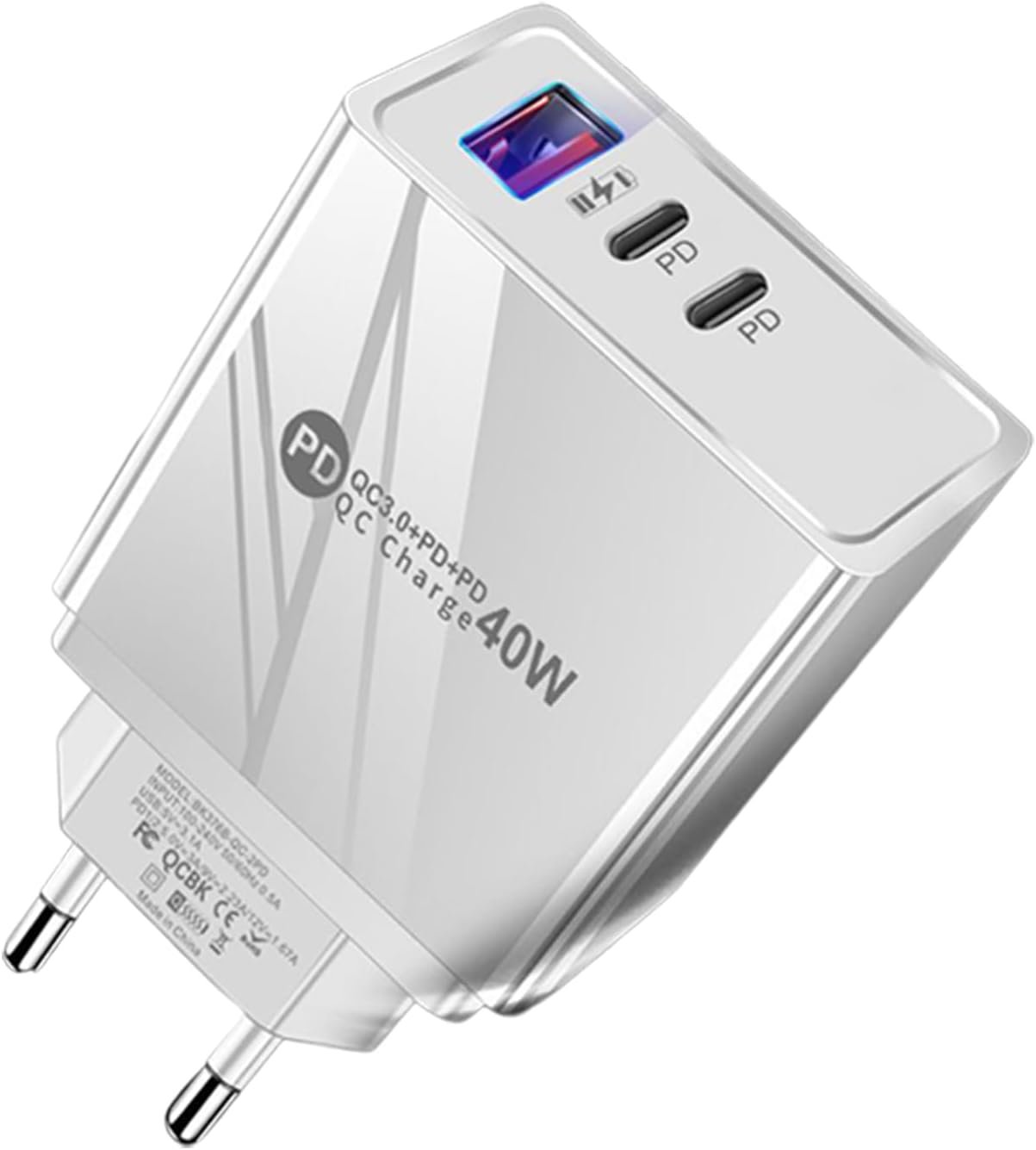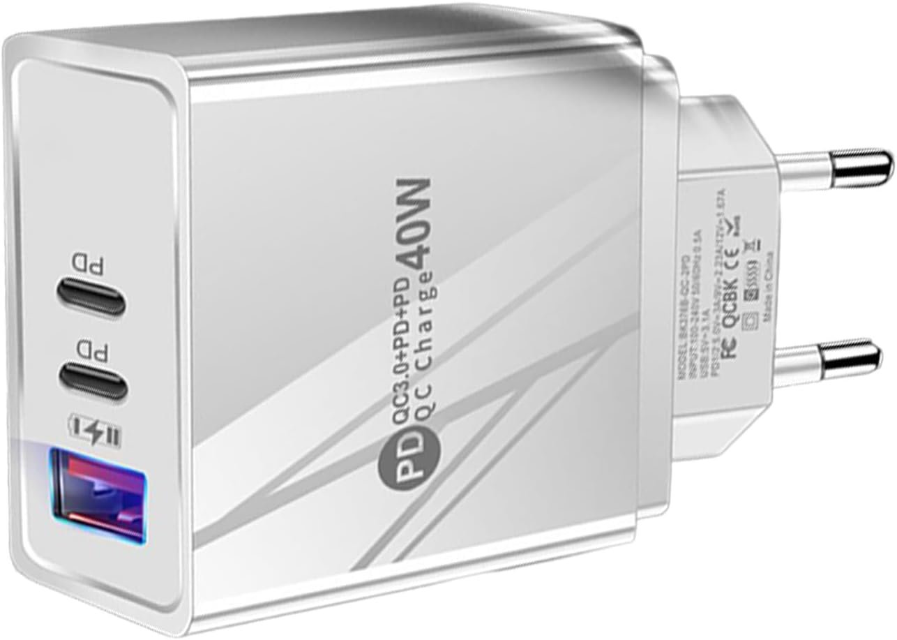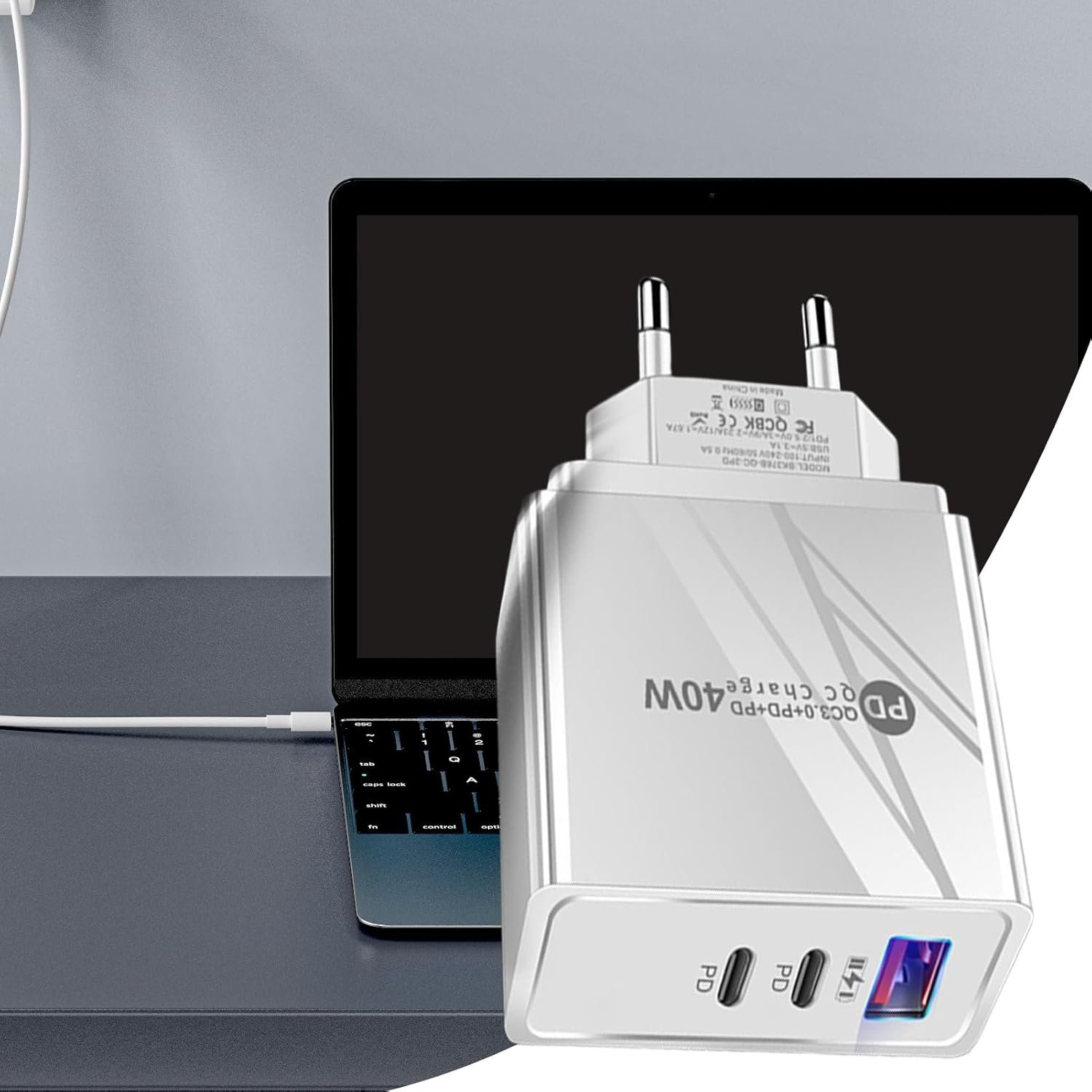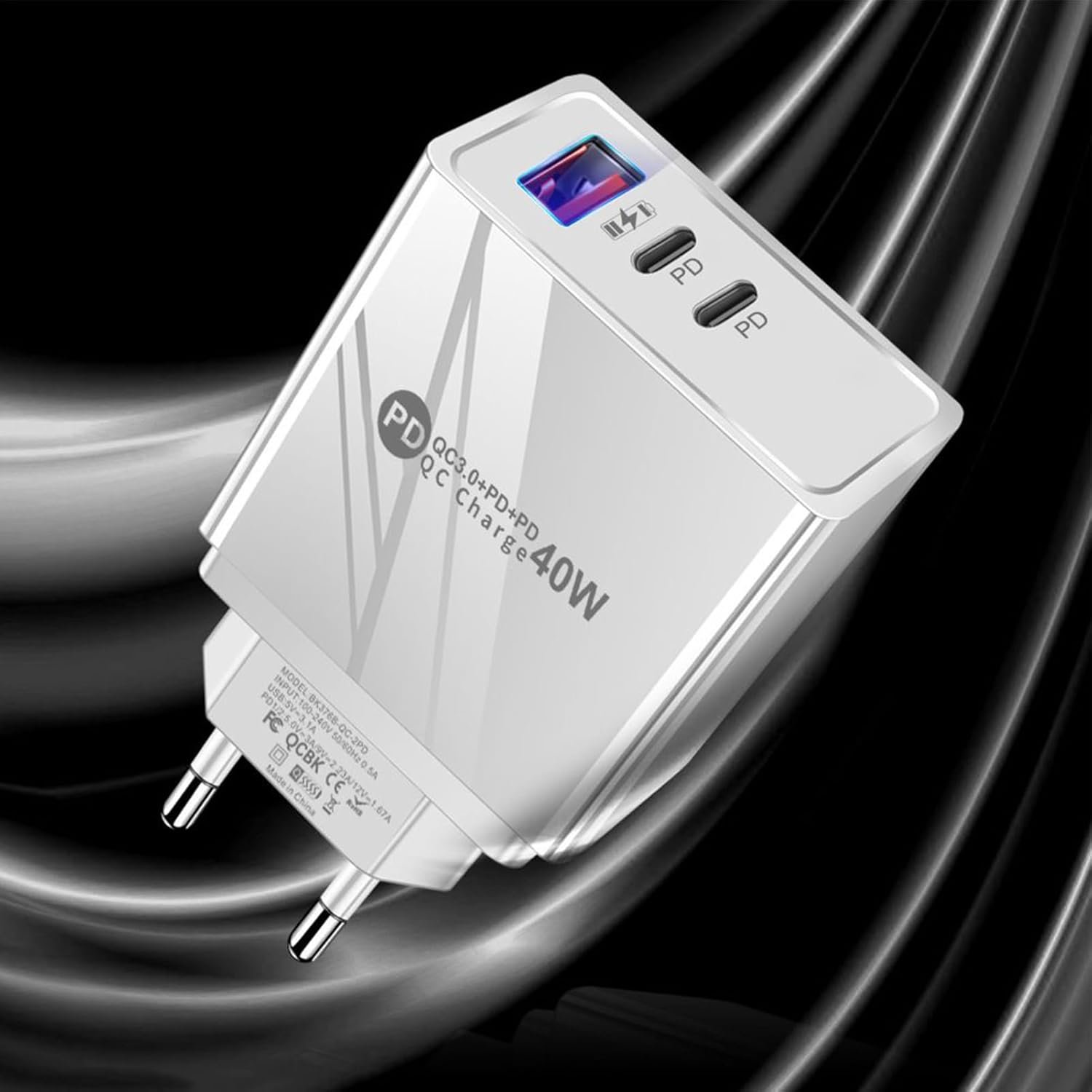 Chargeur USB Murale – Bloc De Charge Rapide Type C 40W avec 3 Ports – Protection Contre Les Surtensions Et Surchauffes pour Accessoires Électroniques Téléphones Et Tablettes