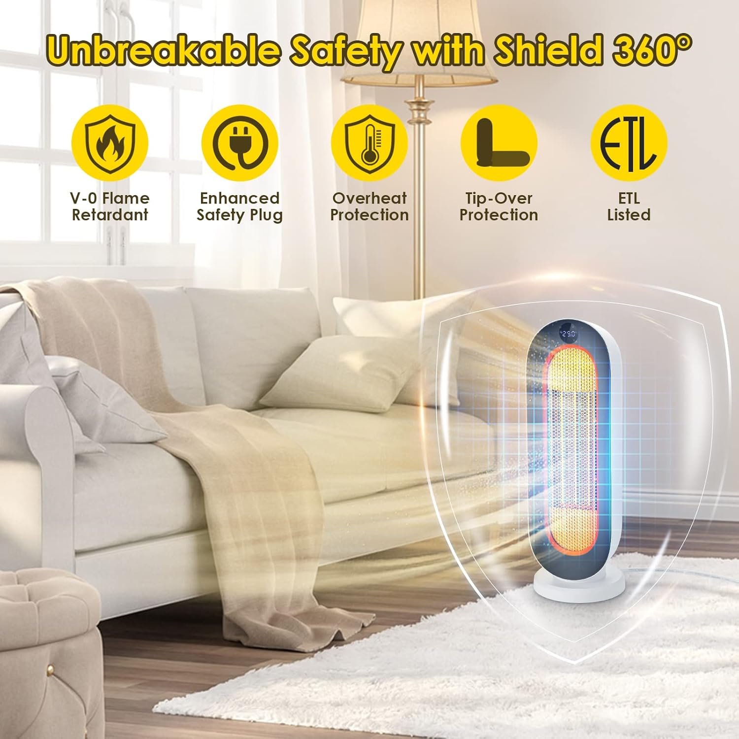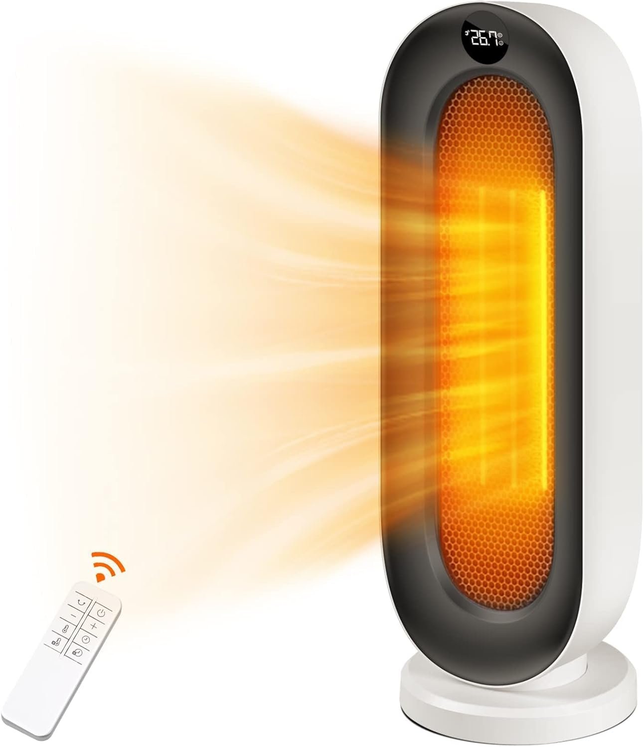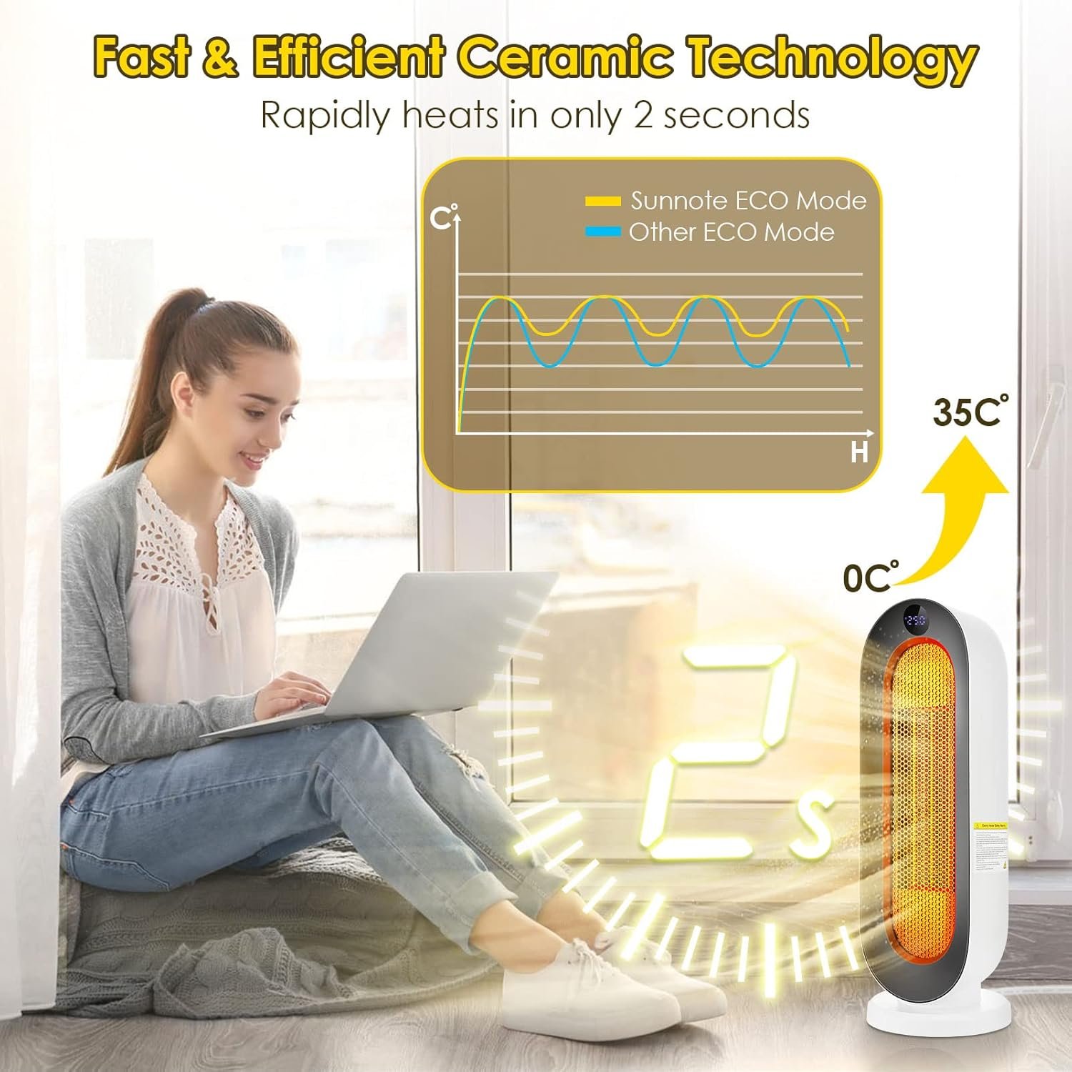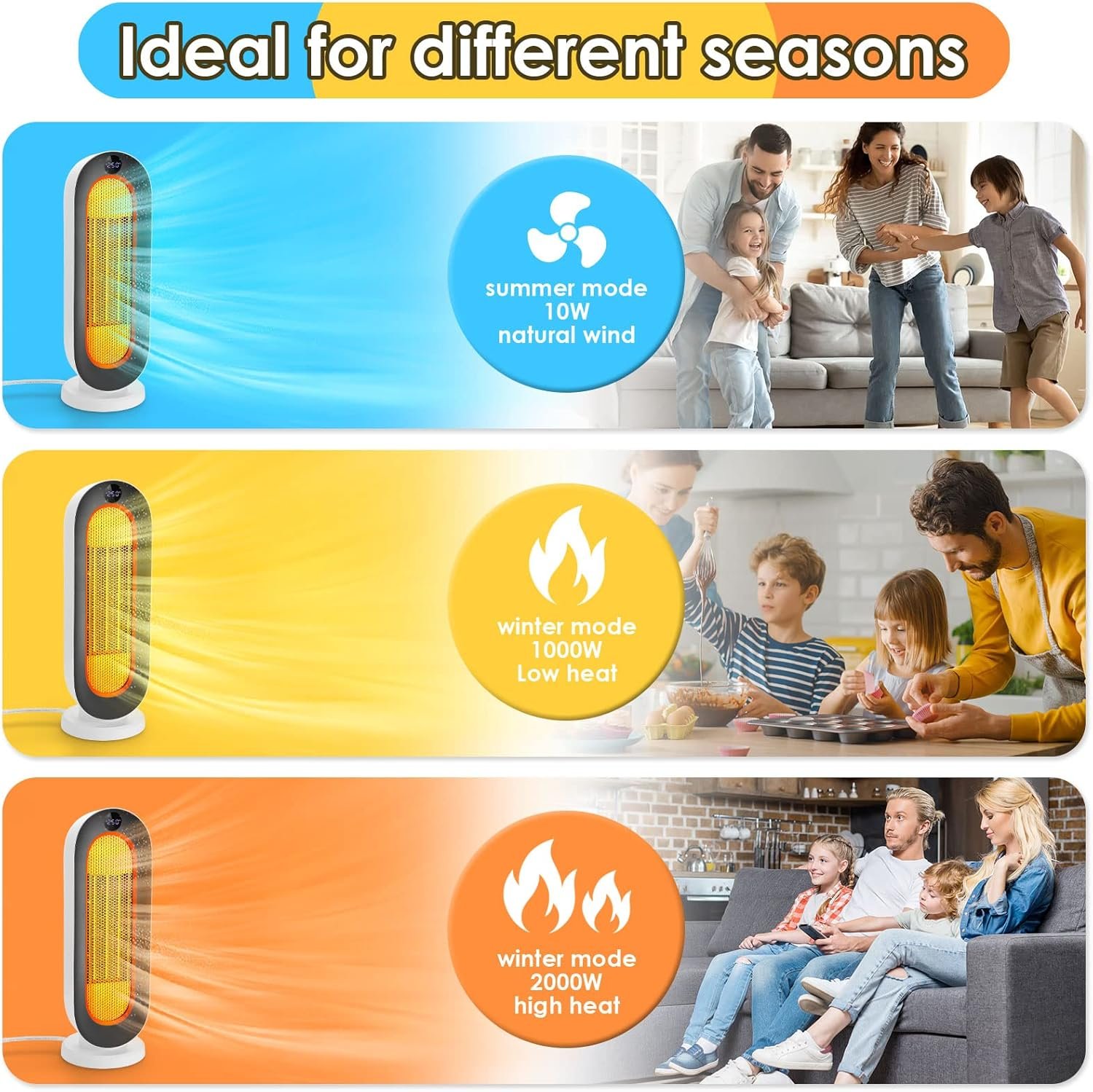 Chauffage 2000W, ECO Chauffage basse consommation, 100°oscillation, minuterie 12h, thermostat, protection contre la surchauffe et le vol, 3 mode, chauffage, maison bureau petit écran