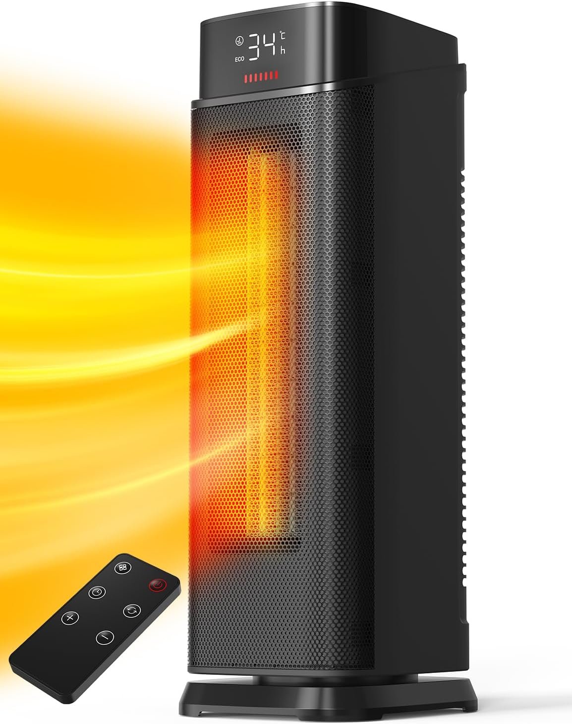 Chauffage d’appoint, Chauffage PTC 2000W avec 4 Modes, Mode Éco, Oscillation 90°, Minuterie 24H, Télécommande, Silencieux et Puissant avec Protection contre Surchauffe et Chute pour la Maison