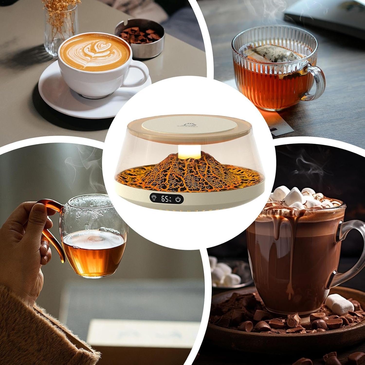 Chauffe-tasse à café intelligent, 4 réglages de température, chauffage de tasse à café contrôlé, chauffante portable avec affichage de la température pour la maison, le dortoir, l’hôtel,