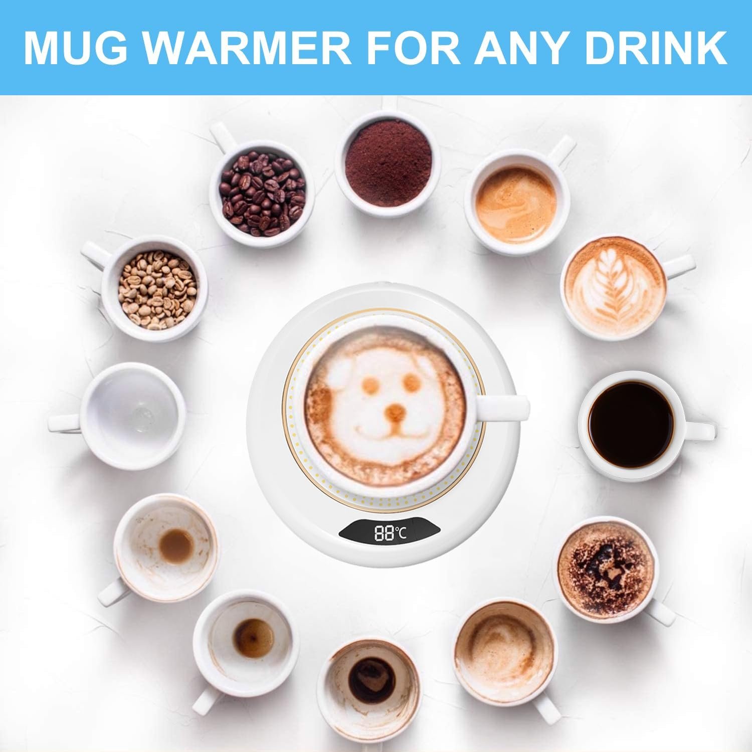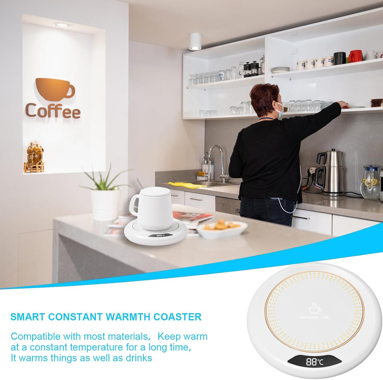 Chauffe-tasse électrique avec 3 réglages de température, chauffe-tasse électrique, chauffe-tasse intelligent, avec arrêt automatique pour thé, café, lait au bureau et à la maison (blanc)