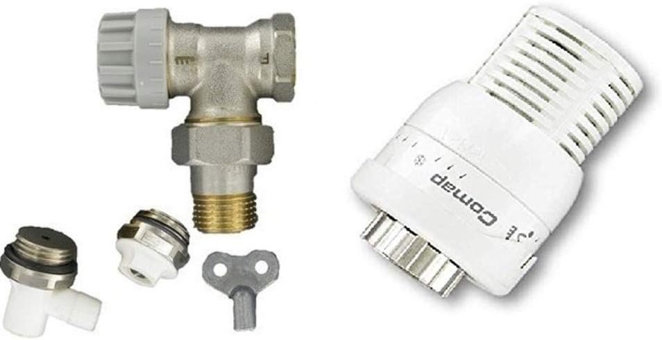 COMAP Kit Complet Robinet et Tête thermostatique Senso 1 et accessoires (raccord de réglage, purgeur, robinet de vidange) pour radiateur – M28 – équerre 1/2″ ou 15/21 – S630682