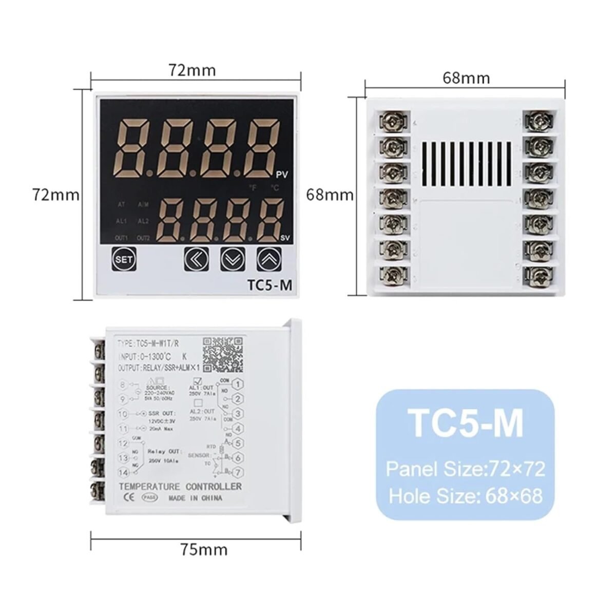 Contrôleur de température Intelligent à affichage numérique série TC5 AC220-240V, Thermostat de contrôle PID à Double sortie et entrée universelle(TC5-M)