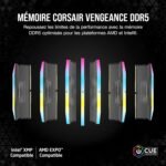 CORSAIR Vengeance RGB DDR5 RAM 32Go (2x16Go) 6400MHz CL30-40-40-104 1.40V AMD Expo Intel XMP 3.0 Mémoire d’Ordinateur – Gris (CMH32GX5M2B6400Z30)