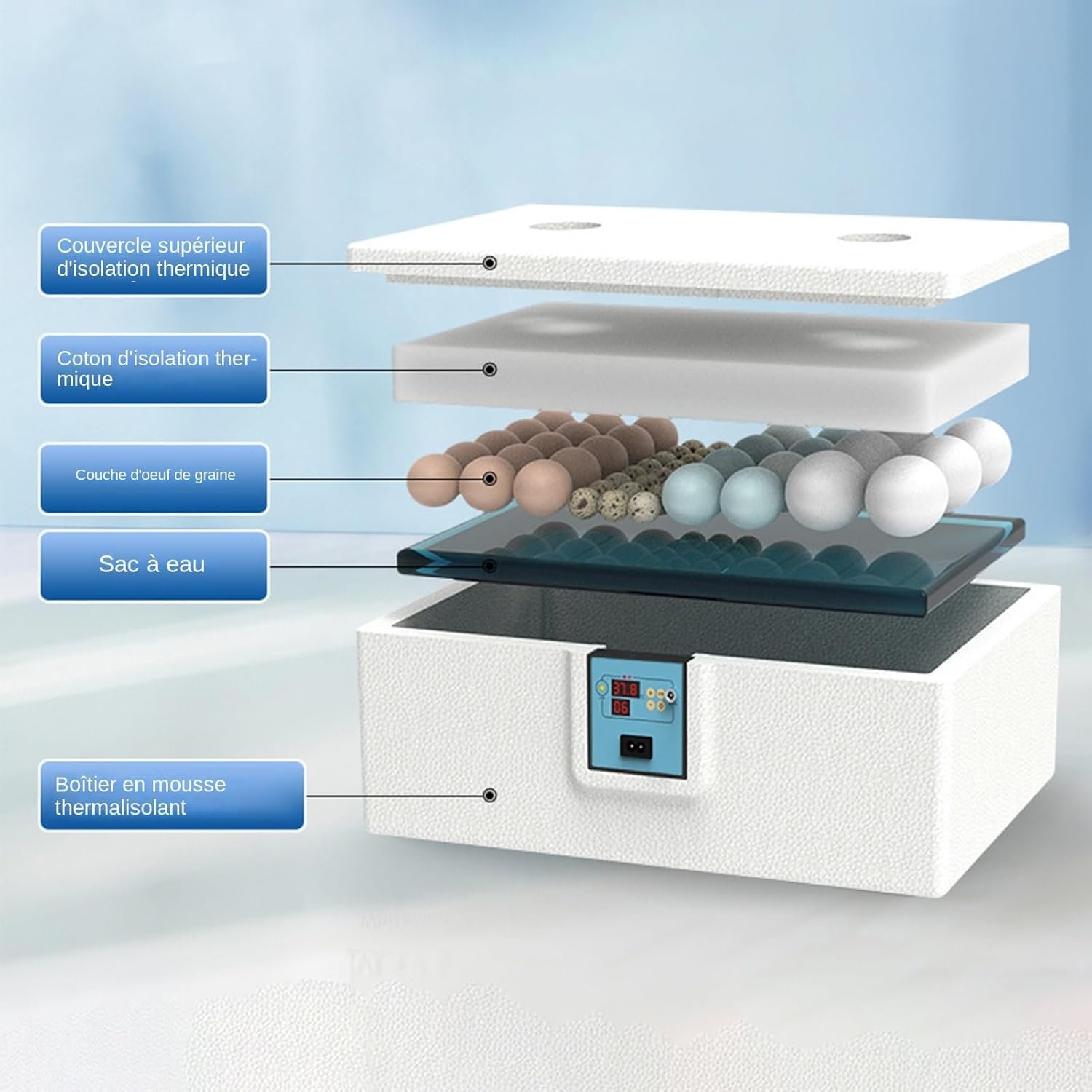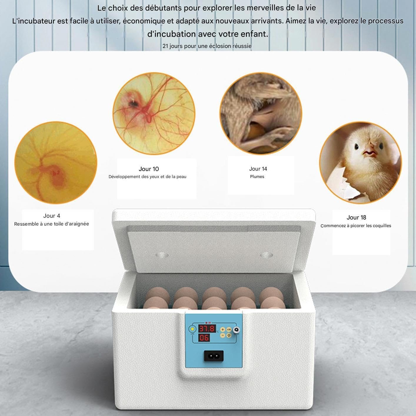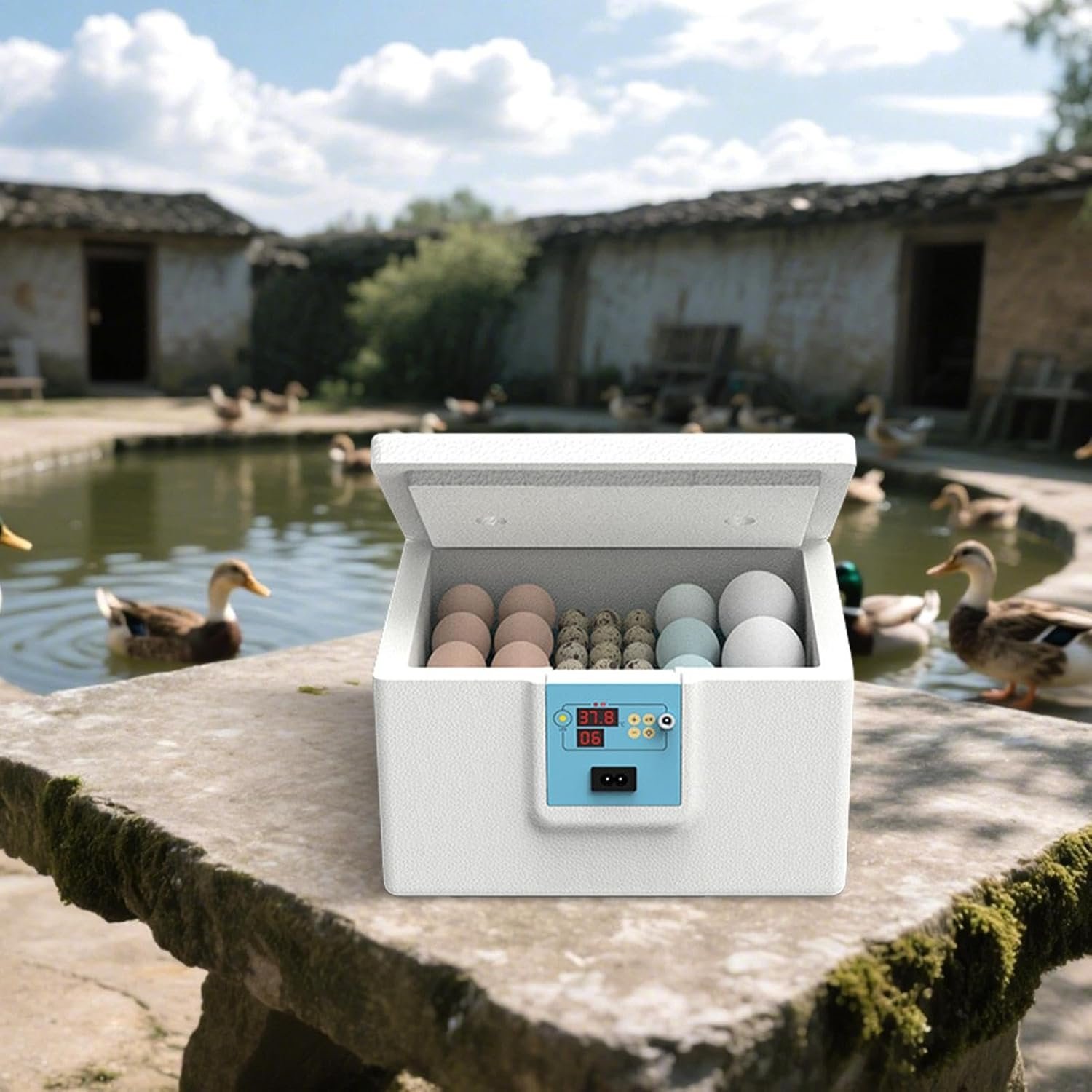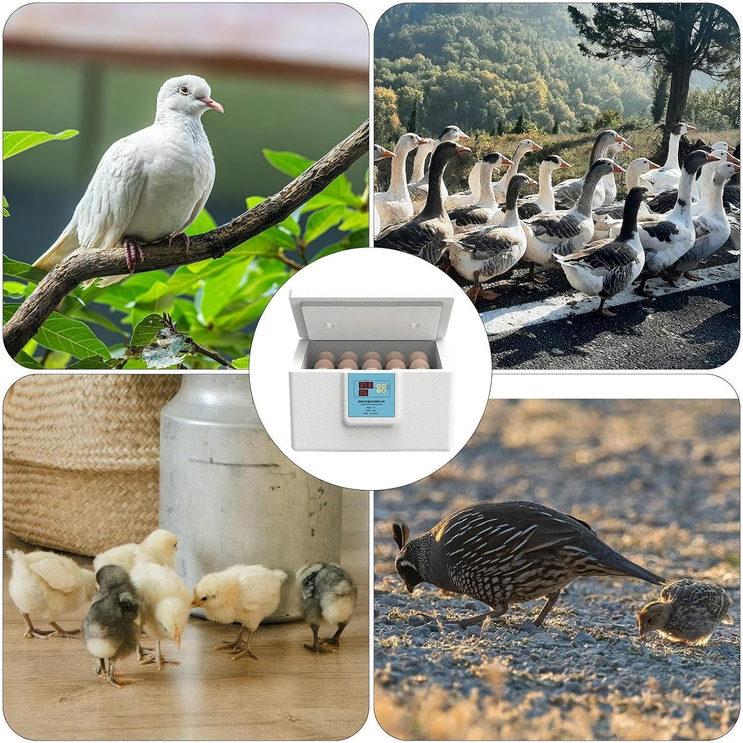 Couveuse à Œufs pour Éclosion, Incubateur Avicole Semi-Automatique, Boîte d’Élevage Thermostatique pour Œufs de Caille Pigeon Oiseau Ferme Maison