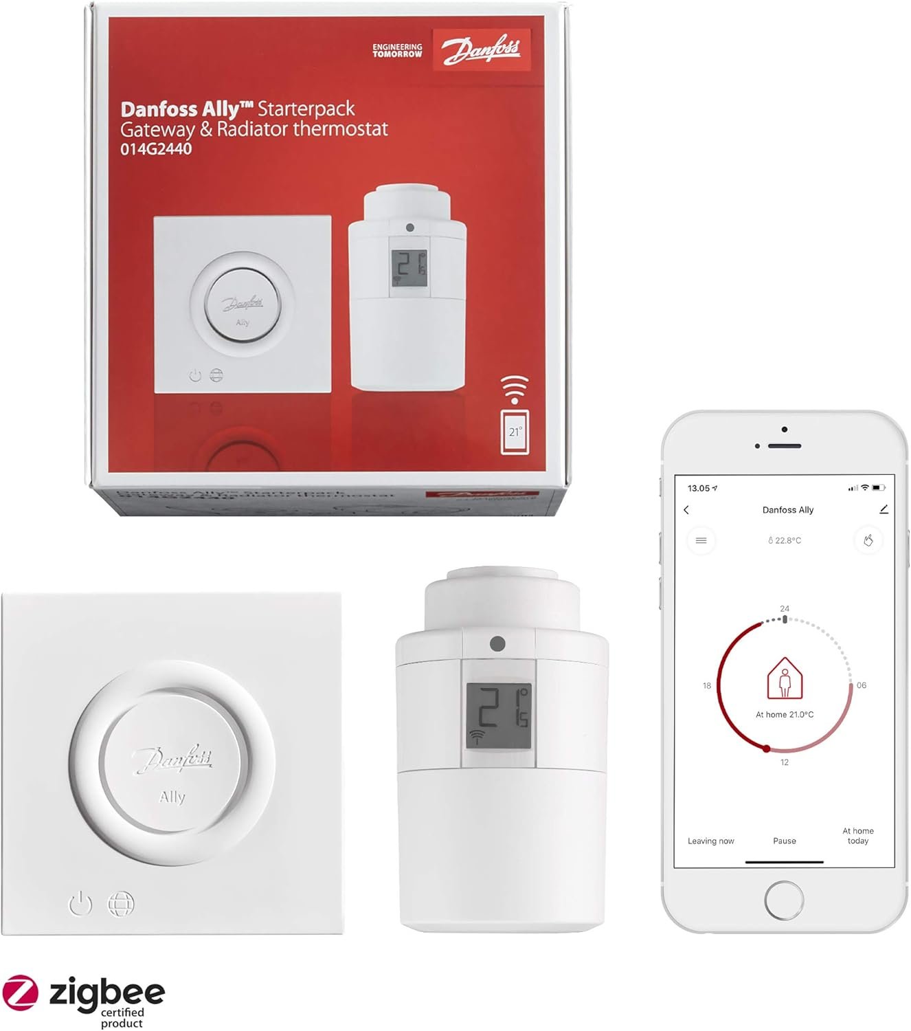 Danfoss 014G2440 Starter Pack Thermostat connecté Ally, Blanc, 12.6 x 12.3 x 12.2 cm