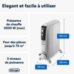 De’Longhi Dragon TRD04 1025 Dragon – Réchauffeur à mazout 2500 W (dissipation thermique), 1100 watts, 52 x 16 x 65 cm, blanc, 230 V ~ 50 Hz