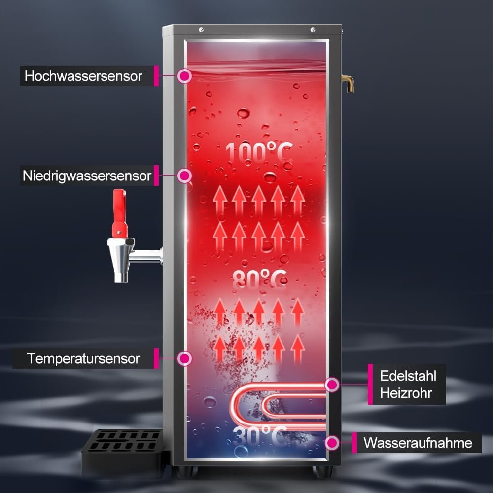 Distributeur d’eau chaude, 15 l, en acier inoxydable, 3000 W, chauffage rapide, machine à eau chaude électrique, avec minuterie, affichage de l’heure de la température pour la maison, le