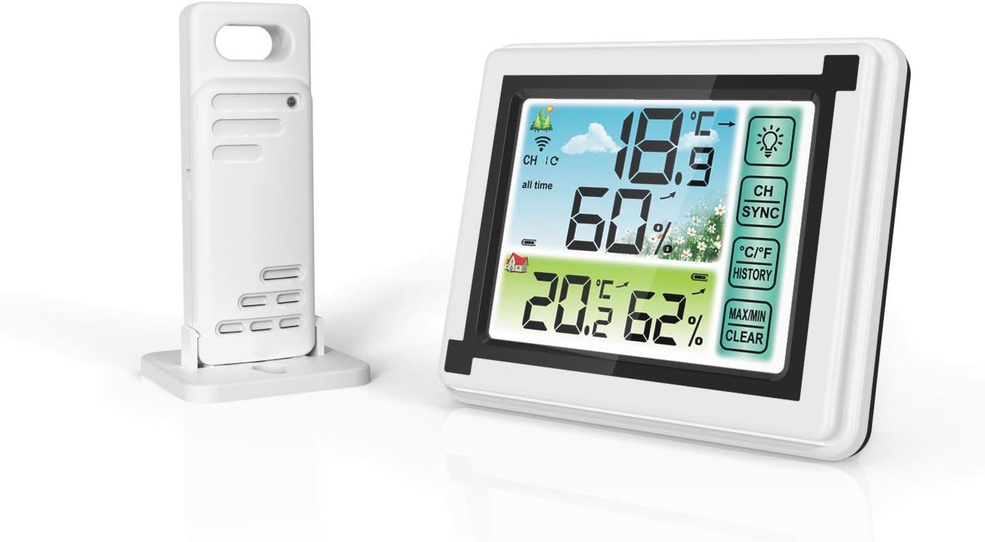 DollaTek Station météo sans fil avec capteur intérieur extérieur Hygromètre thermomètre numérique avec grand écran LCD pour la maison et le bureau