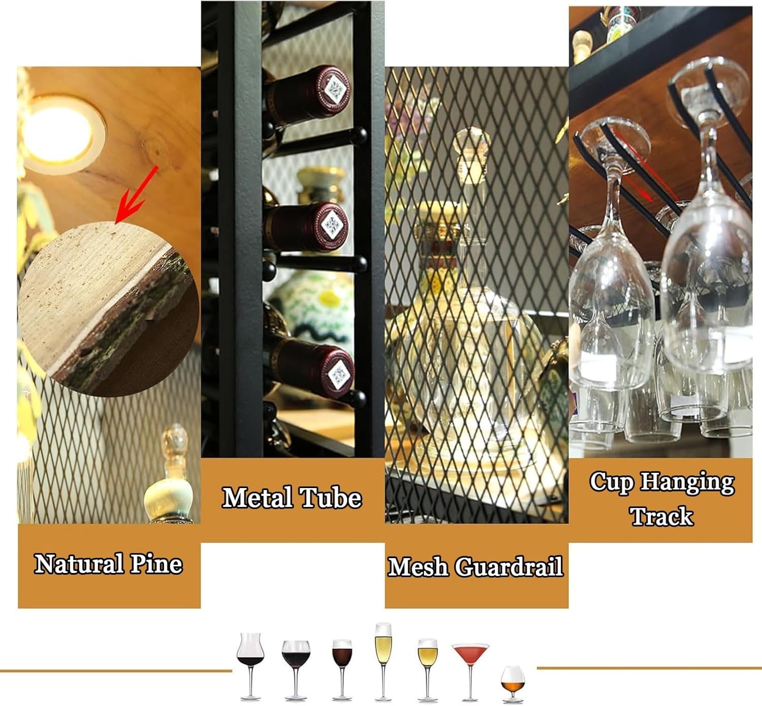 DOUYRN Étagère à vin LED avec Support en Verre, Support Mural Multifonctionnel pour gobelets, pour la Maison, Les Restaurants et Les Bars, étagères flottantes, unité de Bar, Design Simple