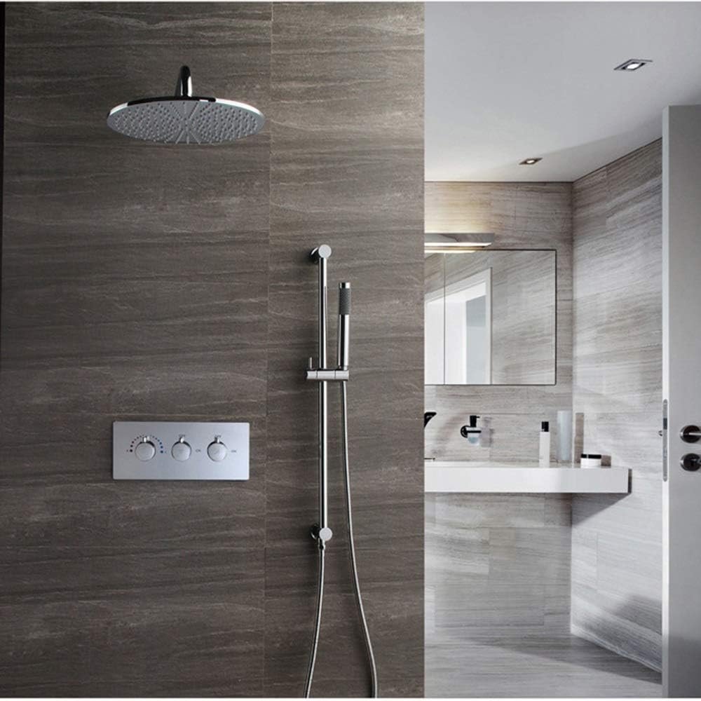 Ensemble de Douche thermostatique Robinet de Douche en cuivre 30 cm Spray supérieur Rond 2 Types de Douche Argent Mural Domestique avec Piste de Douche Fixe à Tige de Levage