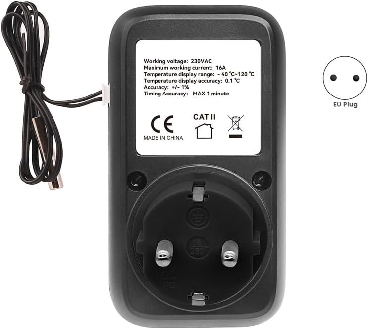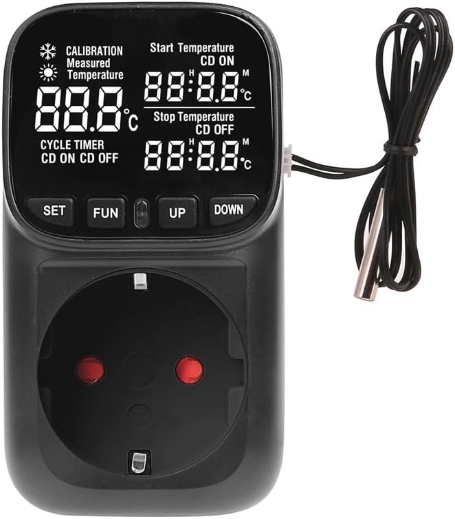 Fangxuee Contrôleur de Température Numérique avec Timer Commutateur Chauffage/Refroidissement pour Réfrigérateur et Aquaculture, Prise EU.