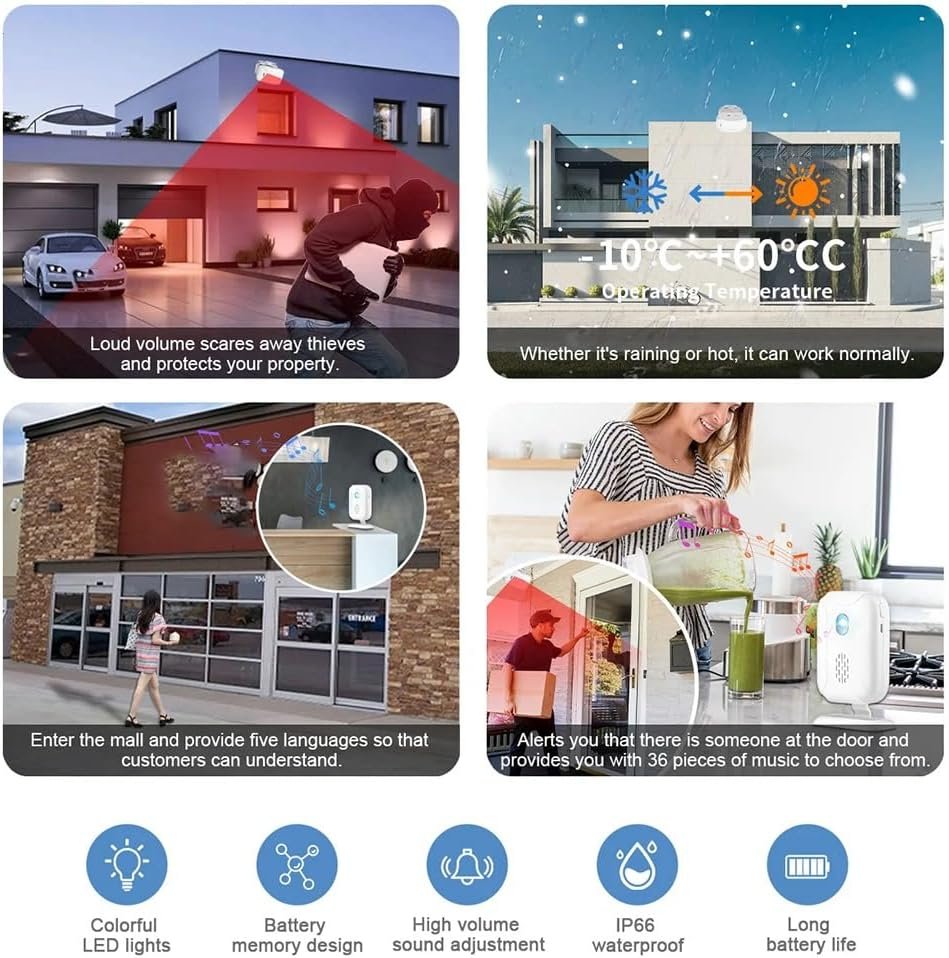 Be the first to review “Fangxuee Sonnette Sans avec Détecteur de Mouvement, Sonnette de Bienvenue pour Maison Intelligente, Carillon pour Hôtel, Magasin, Porte de Sécurité pour Personnes Âgées” Cancel reply