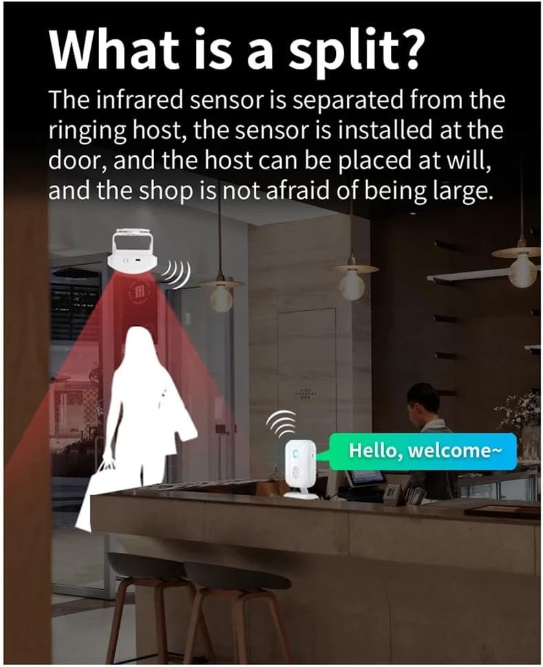Fangxuee Sonnette Sans avec Détecteur de Mouvement, Sonnette de Bienvenue pour Maison Intelligente, Carillon pour Hôtel, Magasin, Porte de Sécurité pour Personnes Âgées